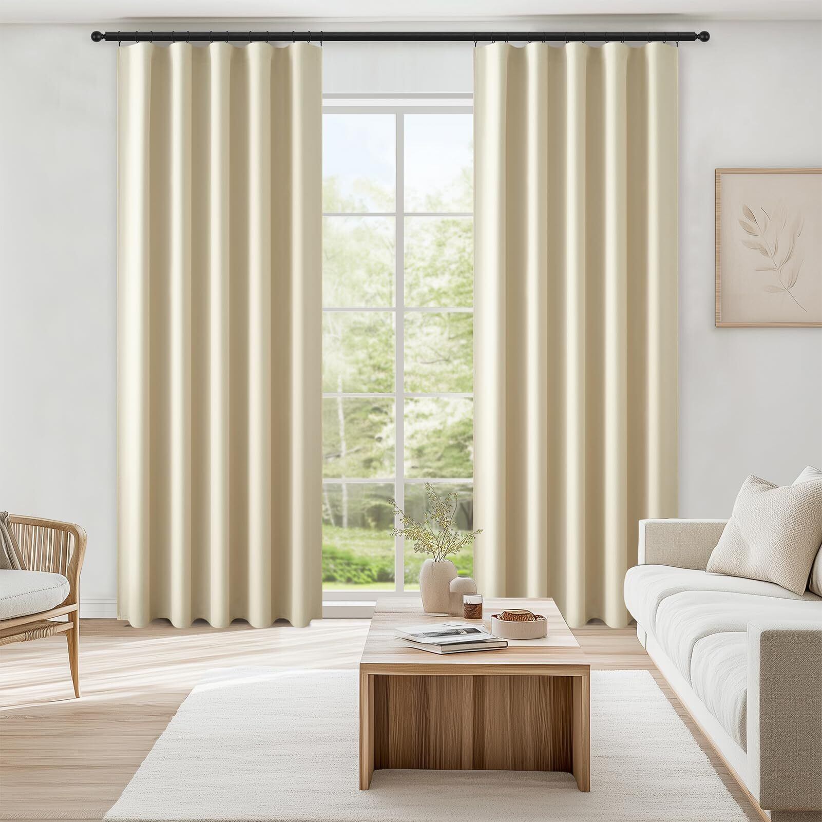 Topfinel カーテン 遮光 断熱 135cm丈 2枚組 小窓 ベージュ フィンランドスタイル フック付き 寝室用 リビング 間仕切り 目隠しカーテン 防音