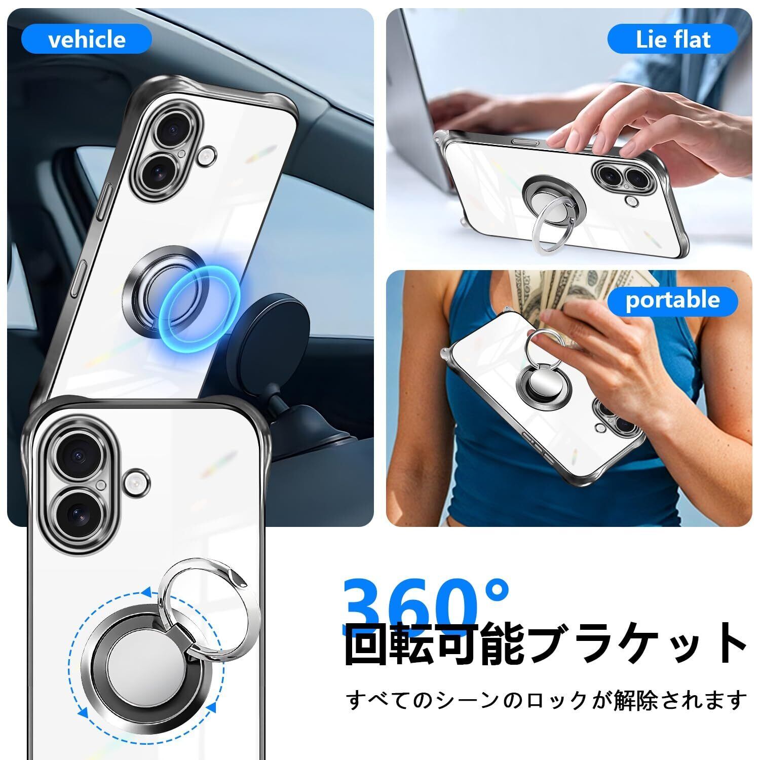 iPhone 17 ケース クリア 360度回転スタンド リング付き アイフォン17 スマホケース 耐衝撃 対応 アイフォン17カバー 透明 TPU iPhone 17ケース ネック ショルダー 肩掛け 斜めかけ 縄掛けカバー ストラップ付き 薄型 軽量 紐付き ネックストラップ ショルダー 肩掛け 縦/横調整可能 取り外し可能 落下防止(ブラック)