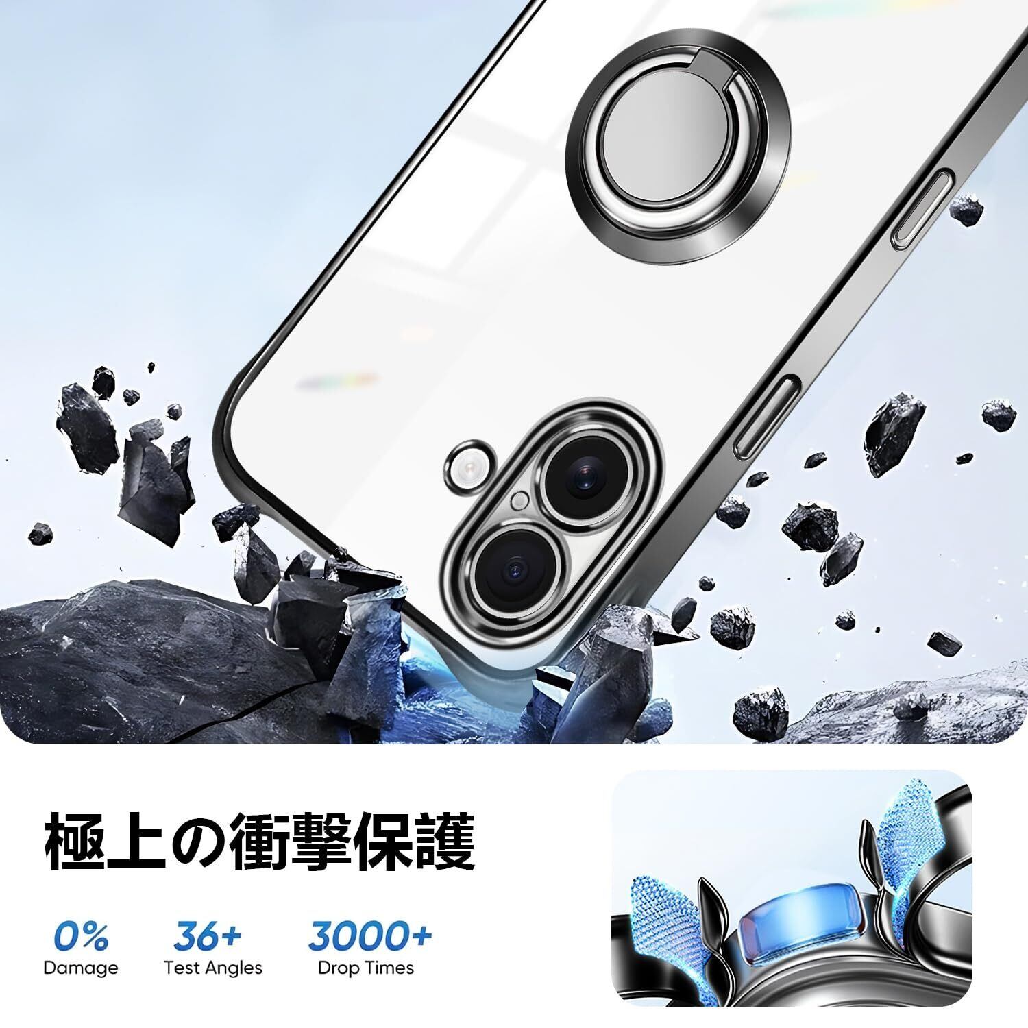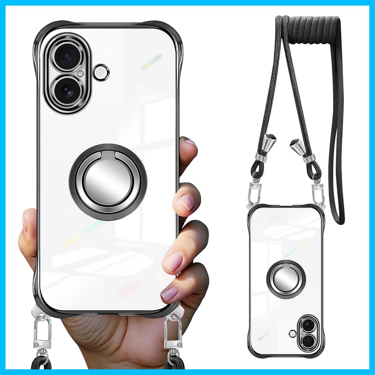 iphone 17 ケース クリア 360度回転スタンド リング付き アイフォン17 スマホケース 耐衝撃 対応 いphone 17 カバー 透明 TPU iPhone 17ケース ネック ショルダー 肩掛け 斜めかけ 縄掛けカバー ストラップ付き 薄型 軽量 紐付き ネックストラップ ショルダー 肩掛け 縦/横 調整可能 取り外し可能 落下防止(ブラック)