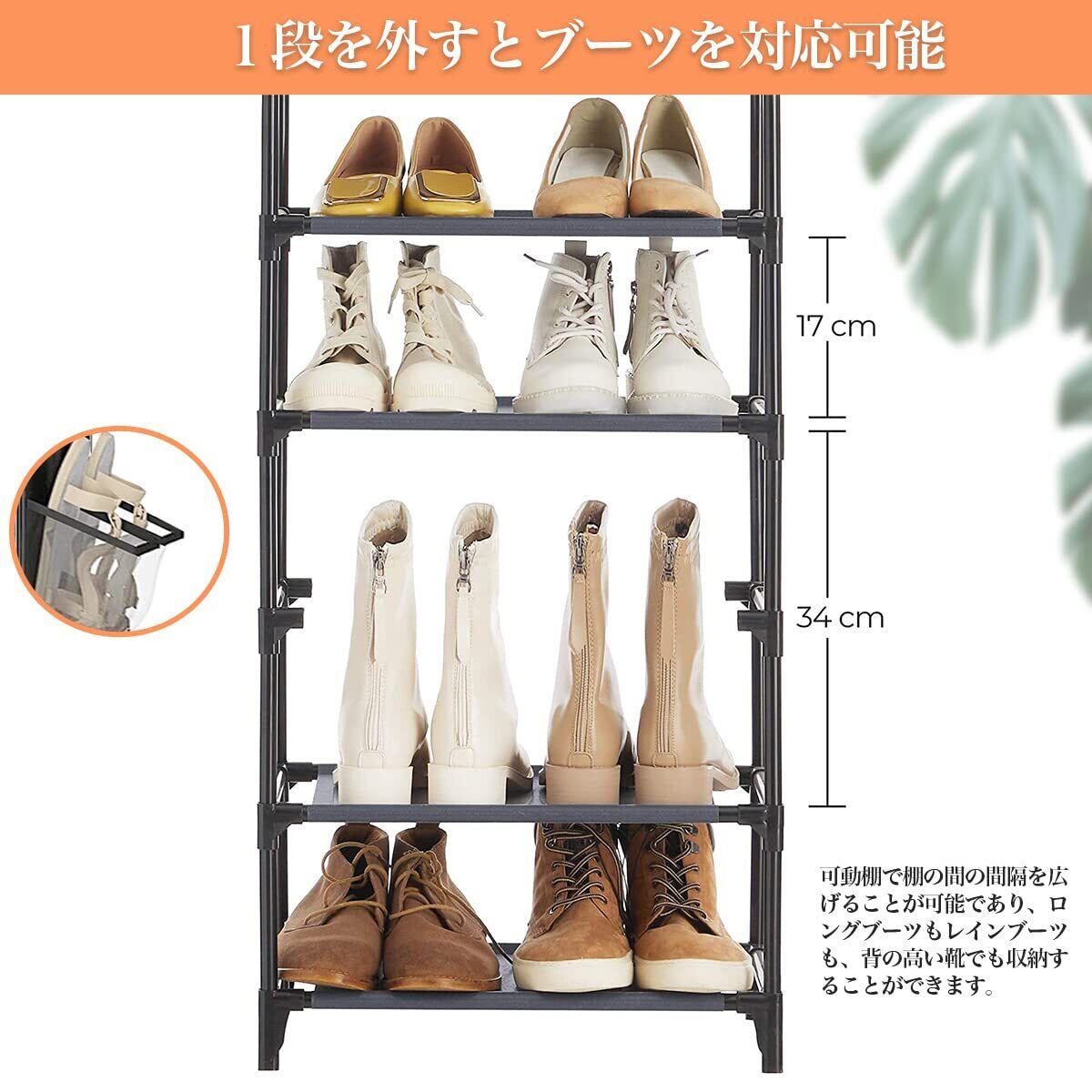 【良い素材を使用】:より肉厚なスチールパイプは錆びにくく、耐摩耗性抜群です。PPフィルムで強化した不織布棚は、通気性に優れて、防水もできます。普段のお手入れが簡単になります。シューズラック底部は床からも約5cm離れているので、湿気やホコリ等がつきにくいです