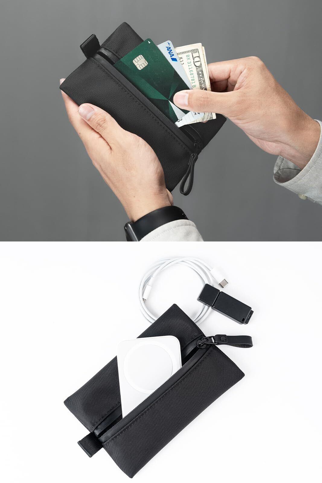 Zepirion ガジェットを守る 防水 ガジェットポーチ 薄型 小型 トラベルポーチ 旅行 出張 便利グッズ マウス ケーブル モバイルバッテリー 収納ポーチ ブラック Sサイズ