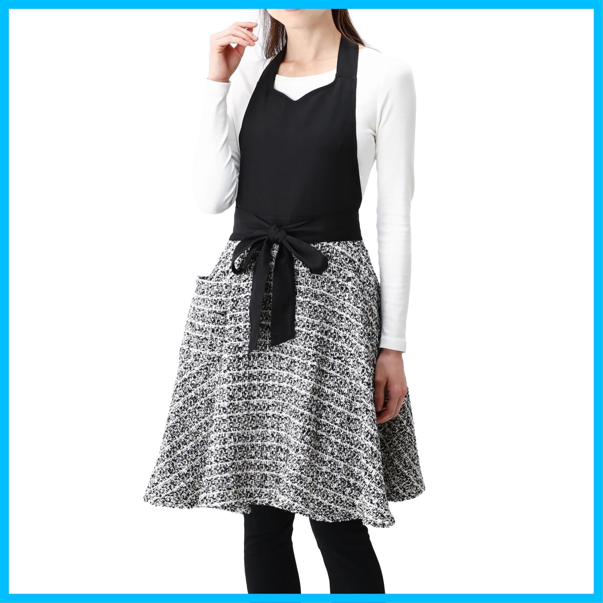 スカート部分がツイード生地になっている華やかなエプロンです。 ウエストで切り替えたデザインは甘くなりすぎず、上品にお使いいただけます。