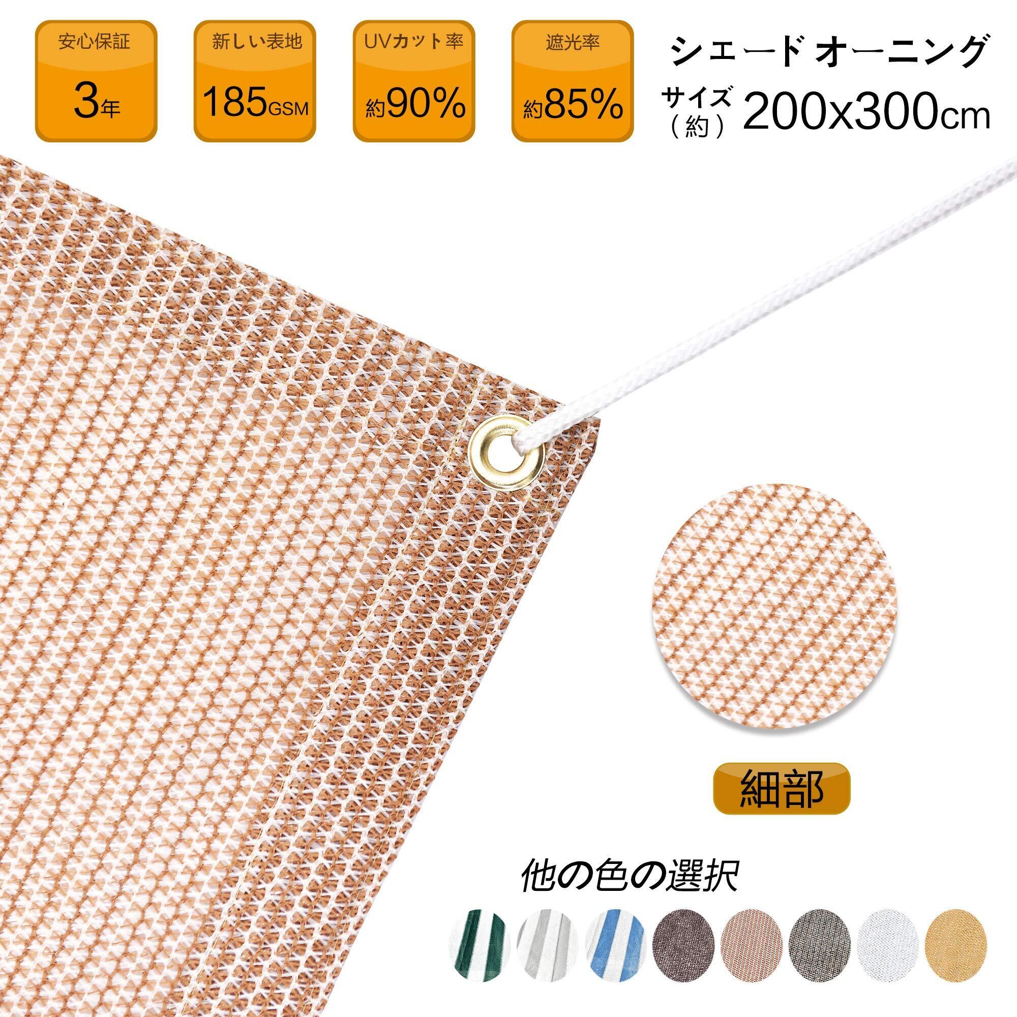 取り付け:錆びないのゴールデンアルミハトメが付いているので、付属品6x1.5m取付けひも、ベランダや窓ペ、廊下、庭下、庭先、玄関などに簡単に取り付けることができます。お洒落なデザインなので、日よけだけでなく、ご自宅やお庭のエクステリアとしてもご利用なれます。