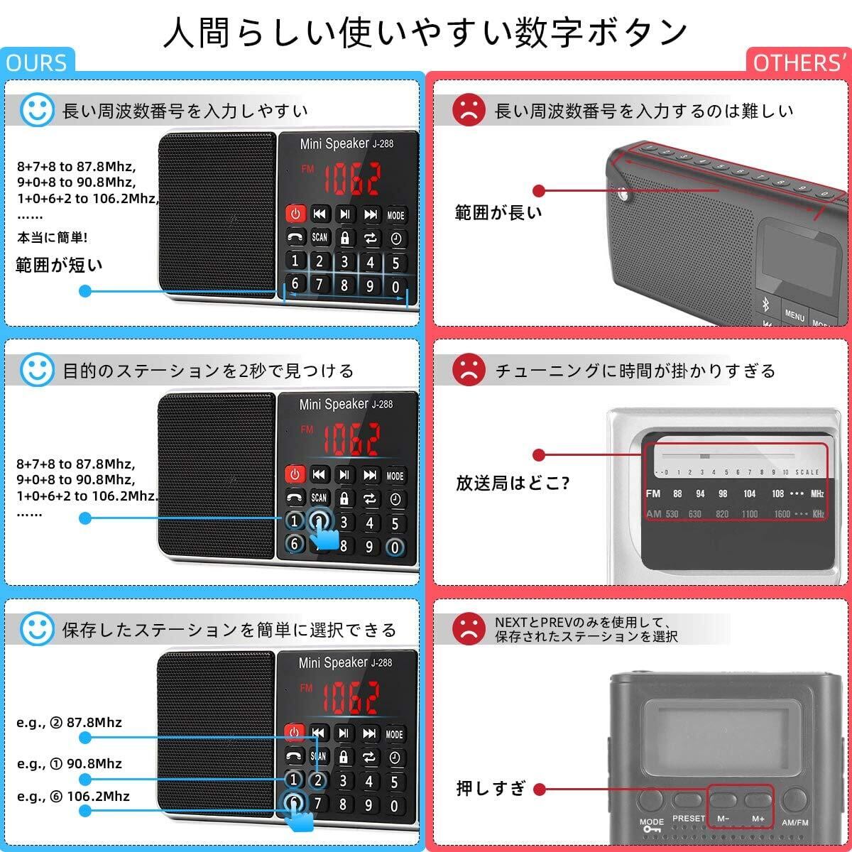 【PSE認証済】Gemean J-288 ポータブル ラジオ ワイド fm am ステレオ 携帯ラジオ bluetooth スピーカー(ワイヤレスブルートゥースイヤホン対応不可)