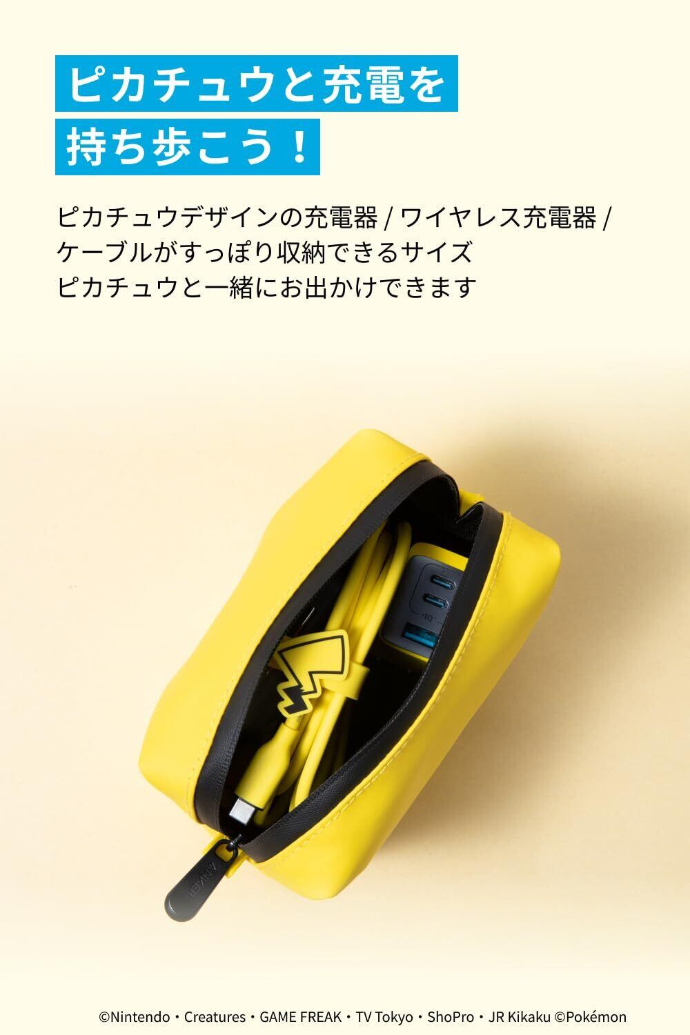 コンパクトなポーチのピカチュウモデル:コンパクトなガジェットポーチ。ピカチュウのシルエットに加え、製品パッケージもポケモンデザインにしたスペシャルなセットです。