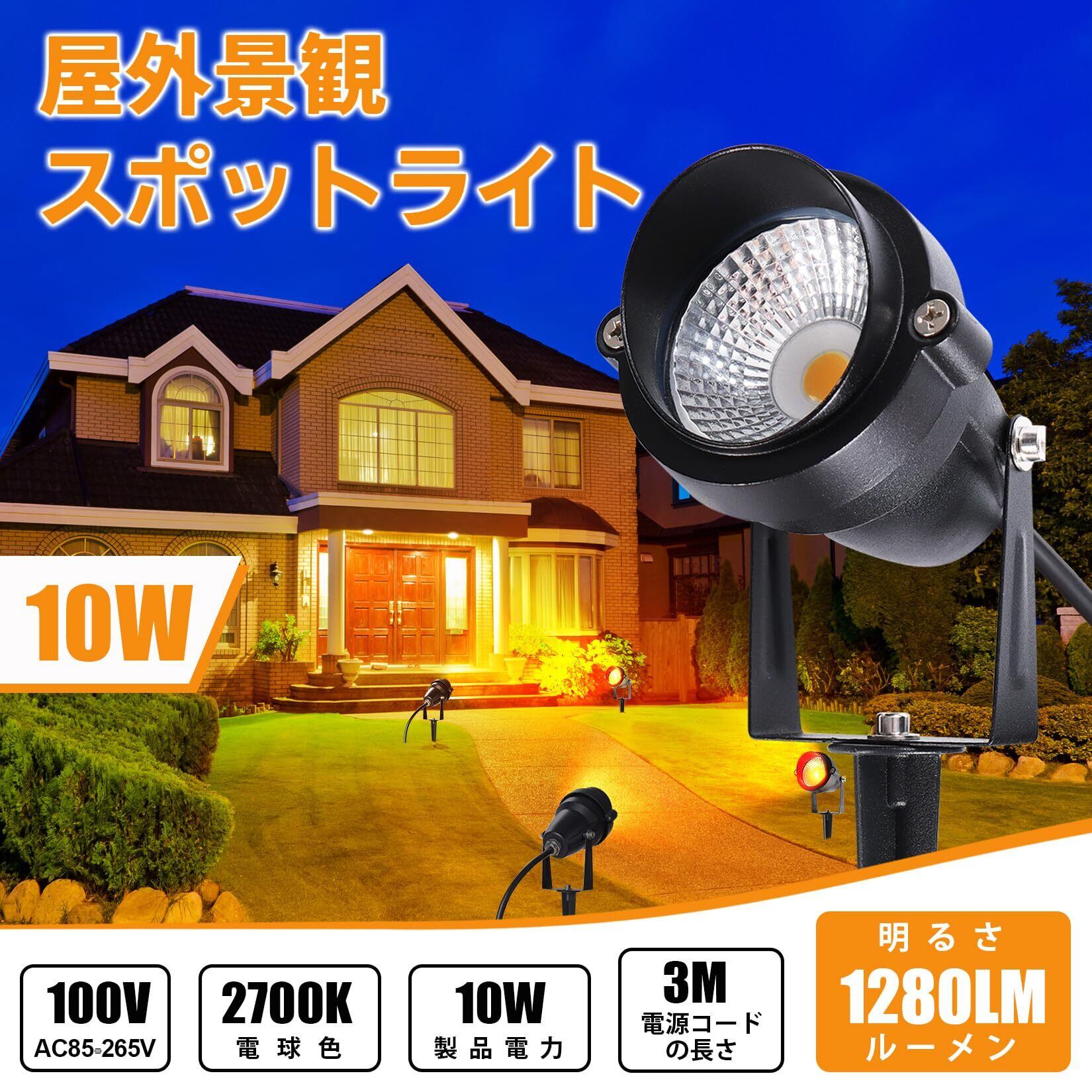 WEAOSJZ LED ガーデンライト 電球色 2700K パスライト 2個セット AC100V 10W スポットライト 常時点灯 高輝度 1280LM 地中埋込型 看板 ライトアップ 芝生ライト IP66 防水 3M 壁掛け 角度回転可 車道 歩道 玄関先 照明 (ガーデンライト 2個入 電球色) | Lulu
