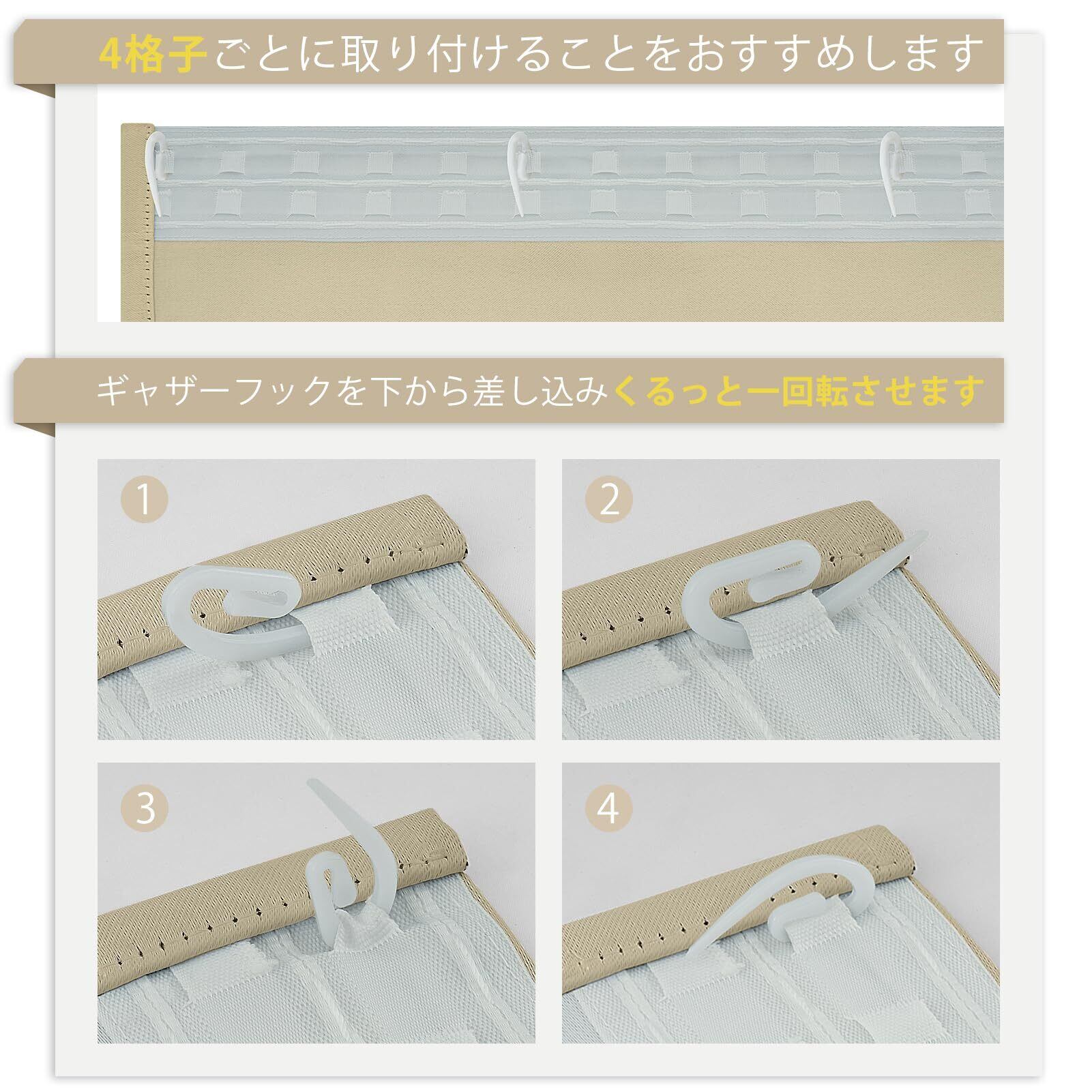 【簡単取り付け!】フック付きのため、難しい取り付けは不要。お手持ちのカーテンレールに簡単に取り付けることができます。手軽に模様替えを楽しんでいただけます。