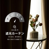 【サイズ】遮光カーテン(2枚組)の幅は、1.5倍ひだの波状効果で約100cm、全展開時で143cmとなります。