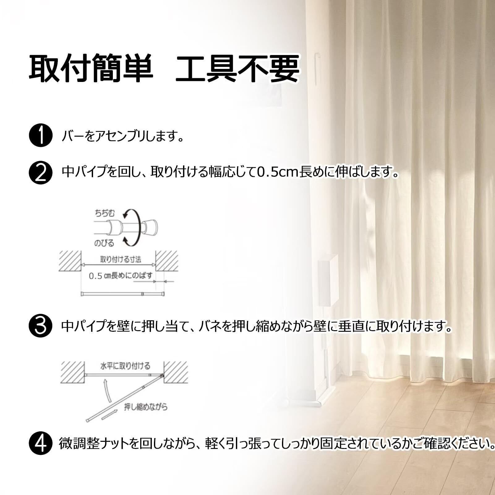 【取付簡単】 ネジやペンチなどの工具を使わず、突っ張るだけで女一人でもお楽に取り付けられます。壁に穴がある心配もなく、壁に痕跡も残さないので、安心に取り付けて、賃貸住宅におすすめです。