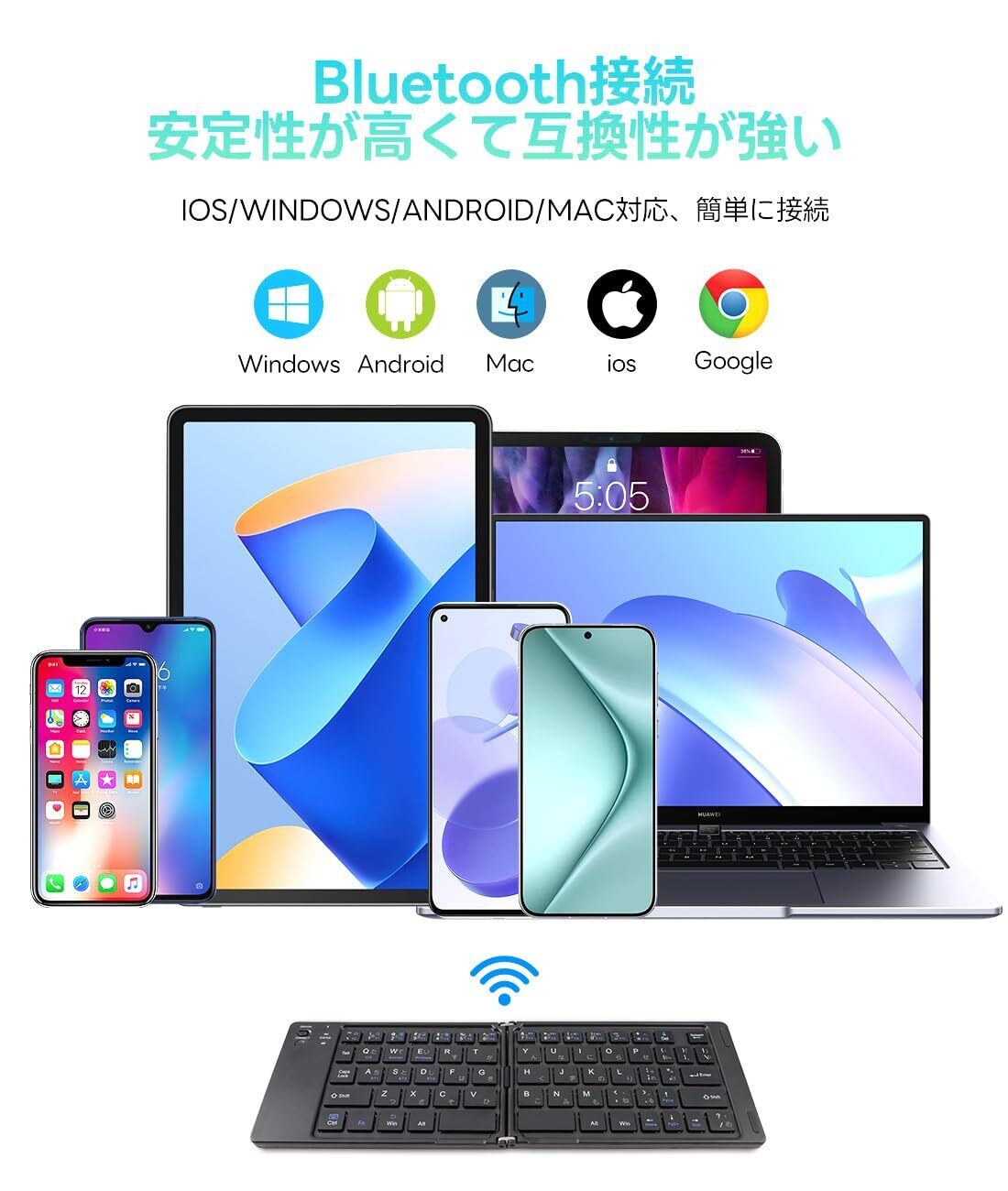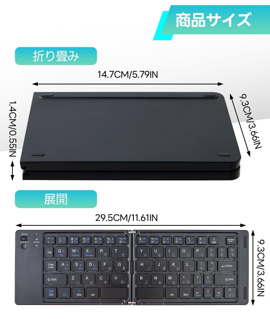 キーボードの説明 ワイヤレス Bluetooth 折り畳み式 平仮名付き 薄型 Type C Mac/Android/Ios/Windows対応 ブラック