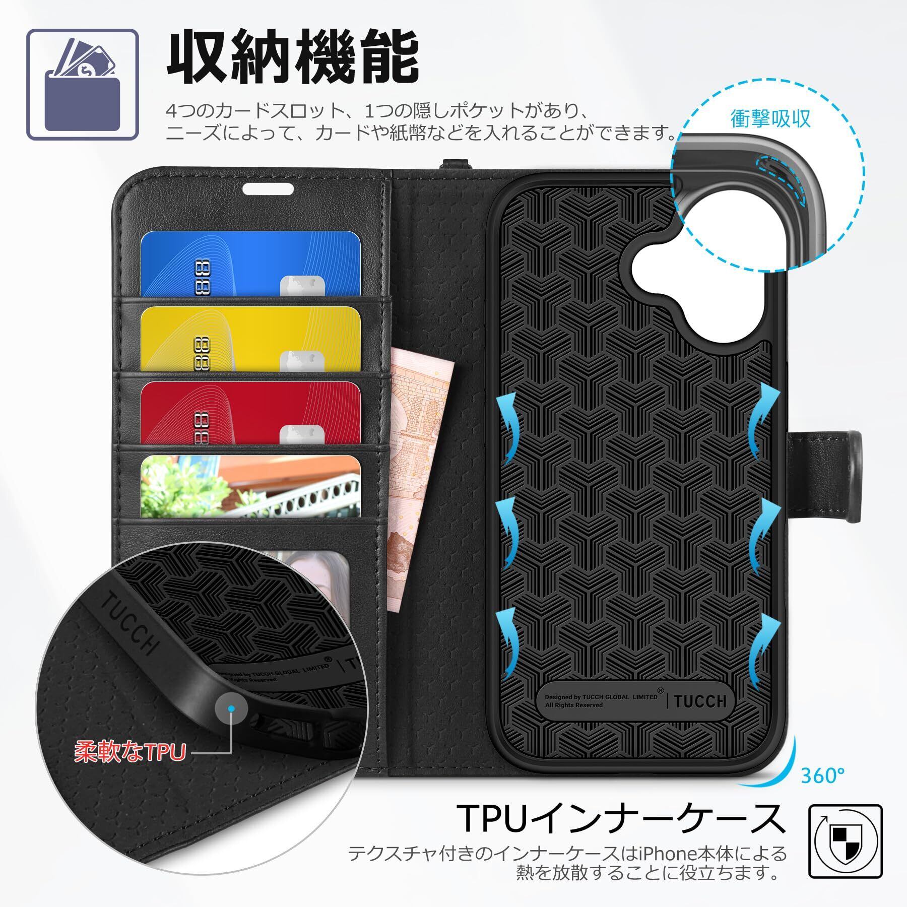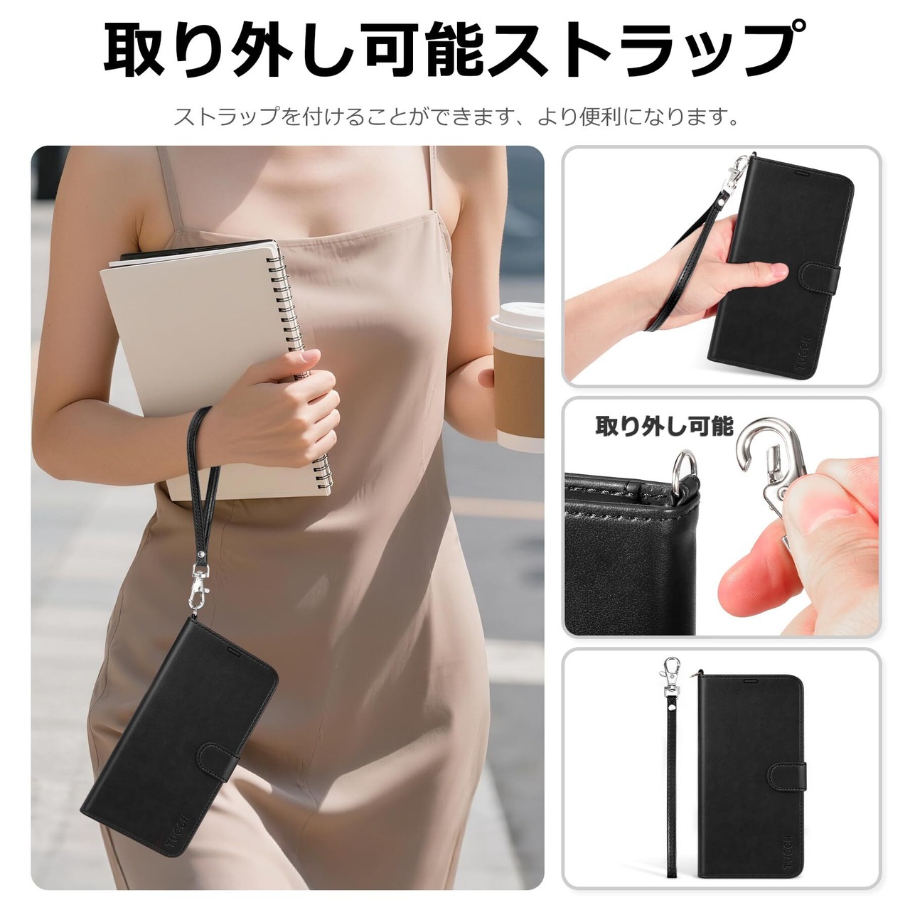 TUCCH iPhone17 対応 ケース 手帳型 ストラップ付き 6.3インチ 4つカードポケット RFIDブロッキング キックスタンド機能 耐衝撃 全面保護 PU合皮 アイホン17 対応 携帯カバー 2025年発売 5G ブラック | Lulu