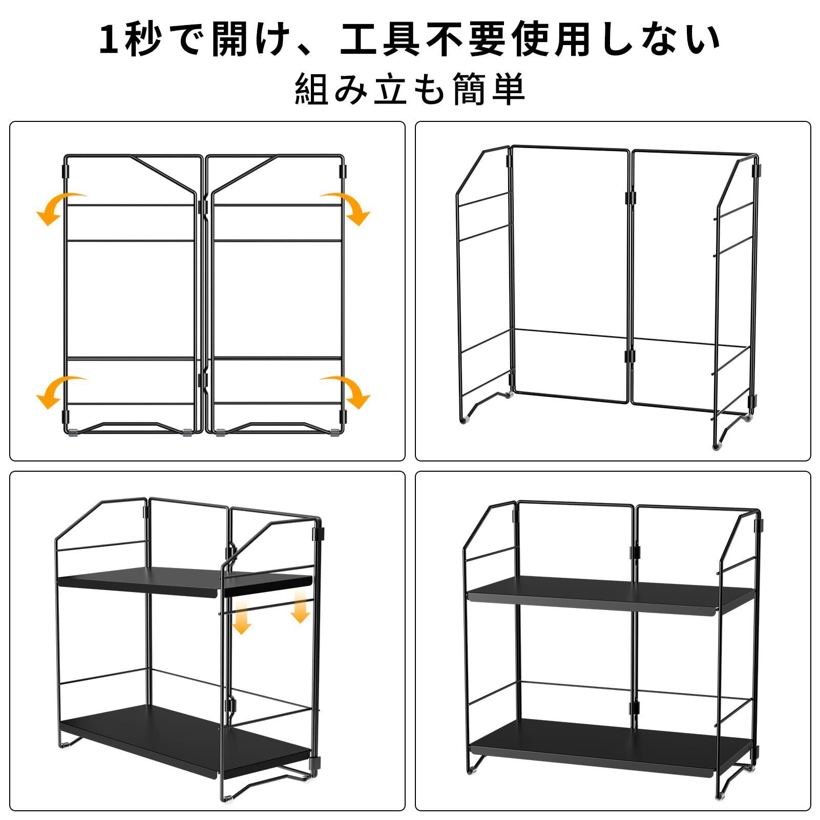 組立も不要、折りたたみキッチン用品:この調味料収納ラックは既に完成品で、面倒な組立も不要です。「部品が足りなく、商品を使うこともできません」という悩みが一切ありません。梱包から調味料ラックをだ出して、展開してすぐ使え、便利です。