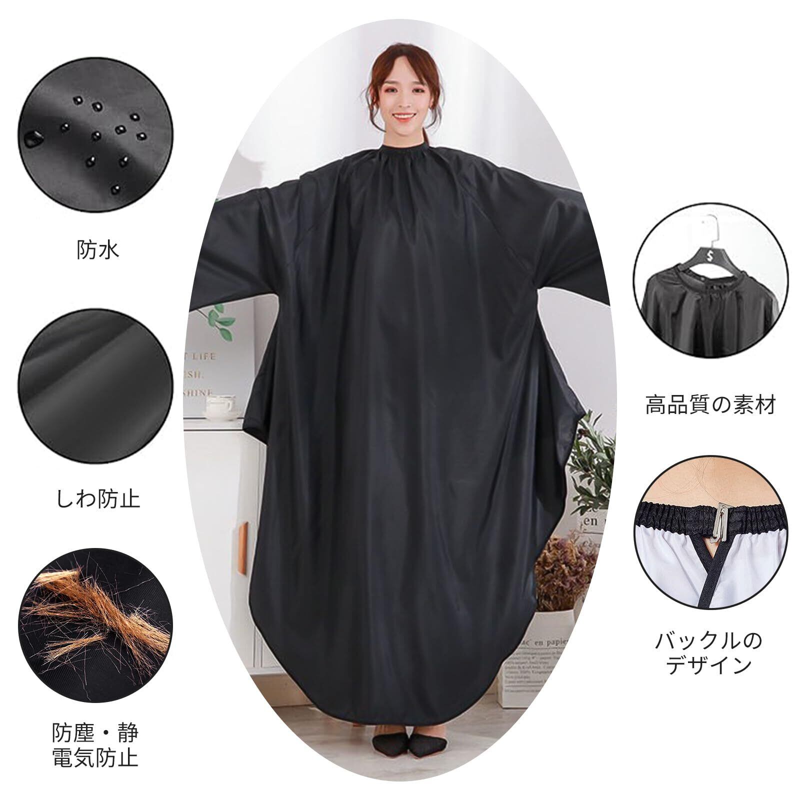 [雲見] 散髪用ケープ ヘアーエプロン 延長された袖 静電気防止 髪にくっつかない 防水 調節可能 大きめ ヘアカットケープ カットクロス 毛染め 美容エプロン 散髪用 毛染め 大人用 子供用