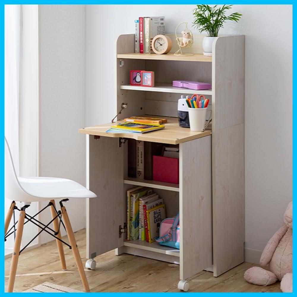 アイリスプラザ 学習机 勉強机 書斎 収納 畳んですっきり 大容量な収納 幅:60cm ライティングデスク FJ-027-IR ホワイト&ビーチ