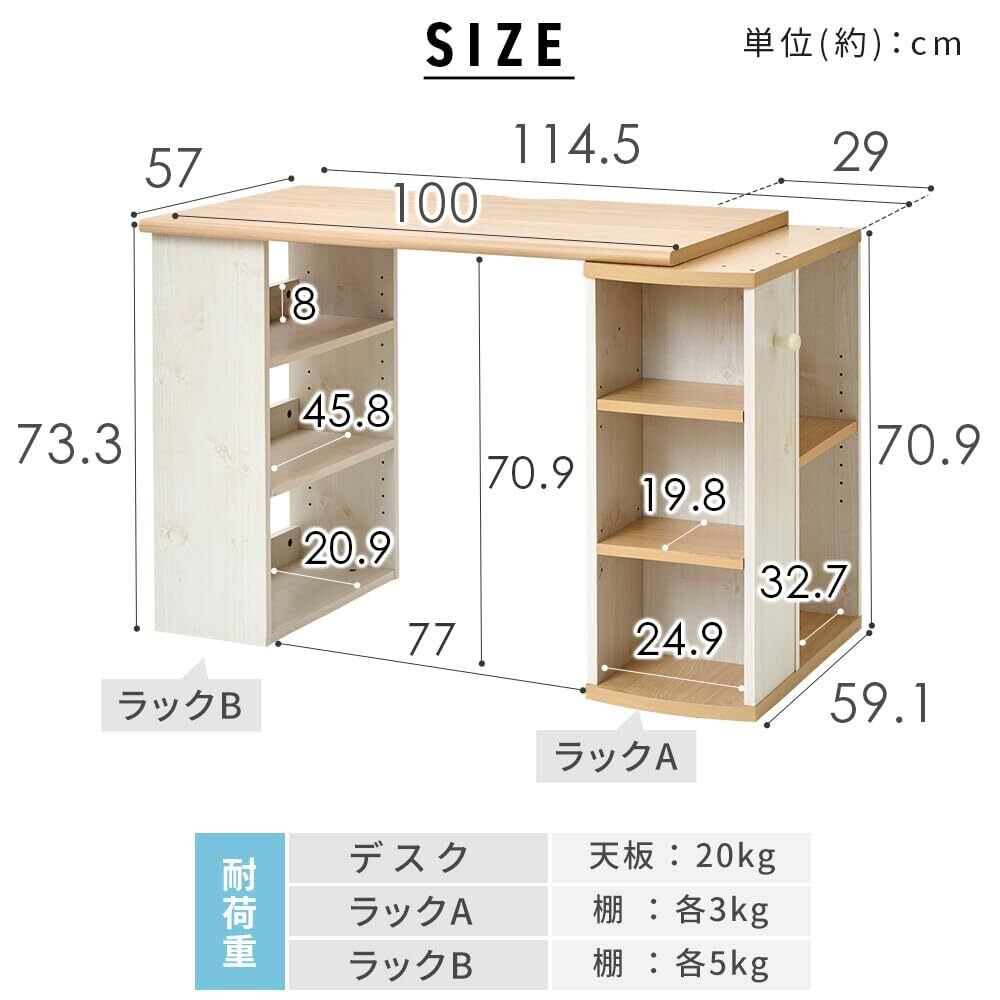アイリスプラザ 学習机 勉強机 コンパクトデスク 収納棚付き 2個でツインタイプに 幅: 100cm FJ-024-IR ホワイト&ビーチ