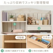【便利な上置き棚で収納力アップ!】上置き棚が付属しており、教科書や文具をすっきり整理できます。必要なものをすぐに手に取ることができ、お子様が自分で片づけやすい工夫が施されています。収納力が向上することで、お部屋全体がスッキリとした印象に。