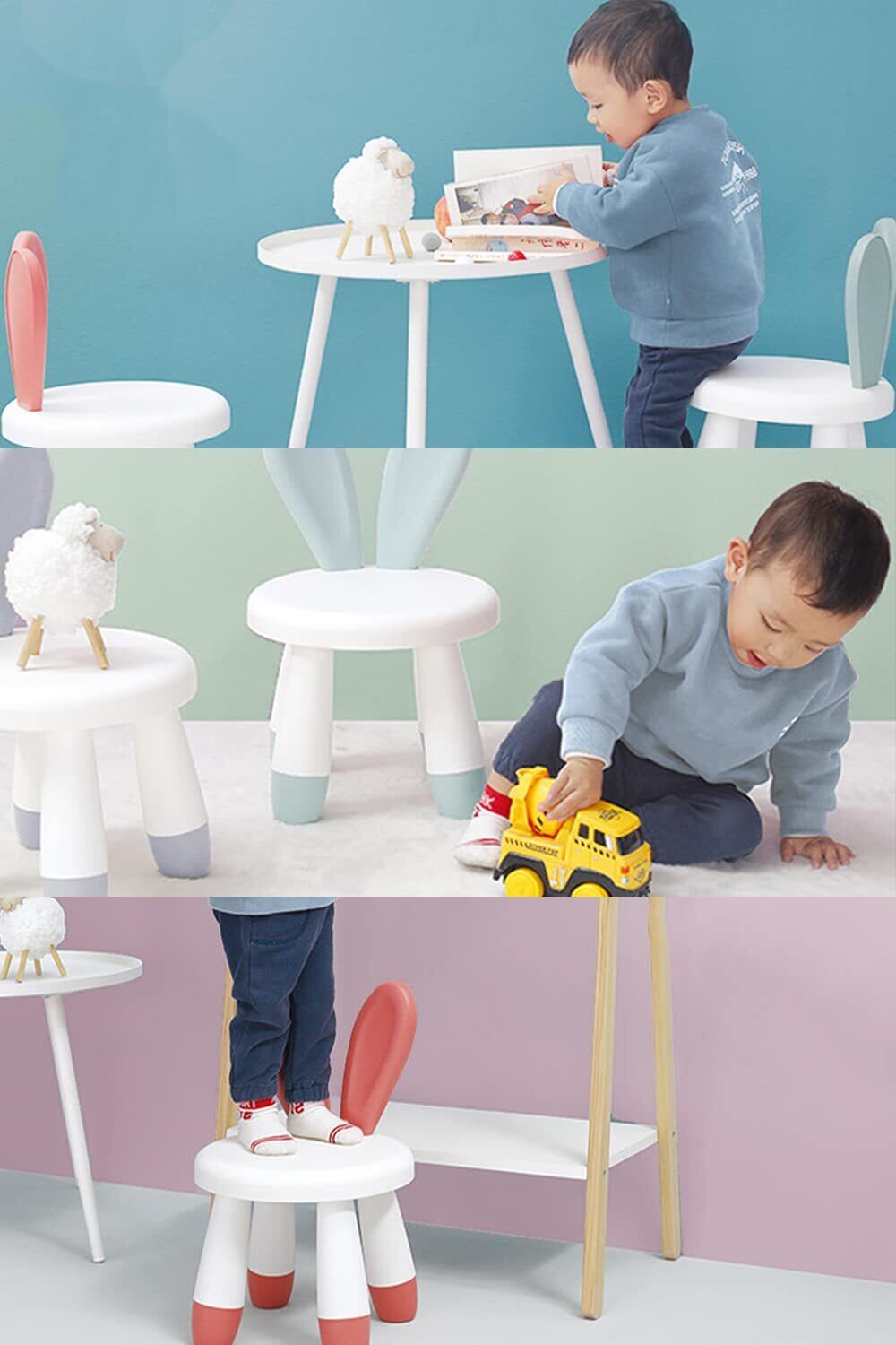 【おしゃれでかわいい子供用スツール】背もたれ部分がかわいいうさぎの耳になっている子供用ダイニングチェア(豆椅子)。インテリアにも映えて、かわいい赤ちゃんにぴったりのシンプルでおしゃれなデザインです。