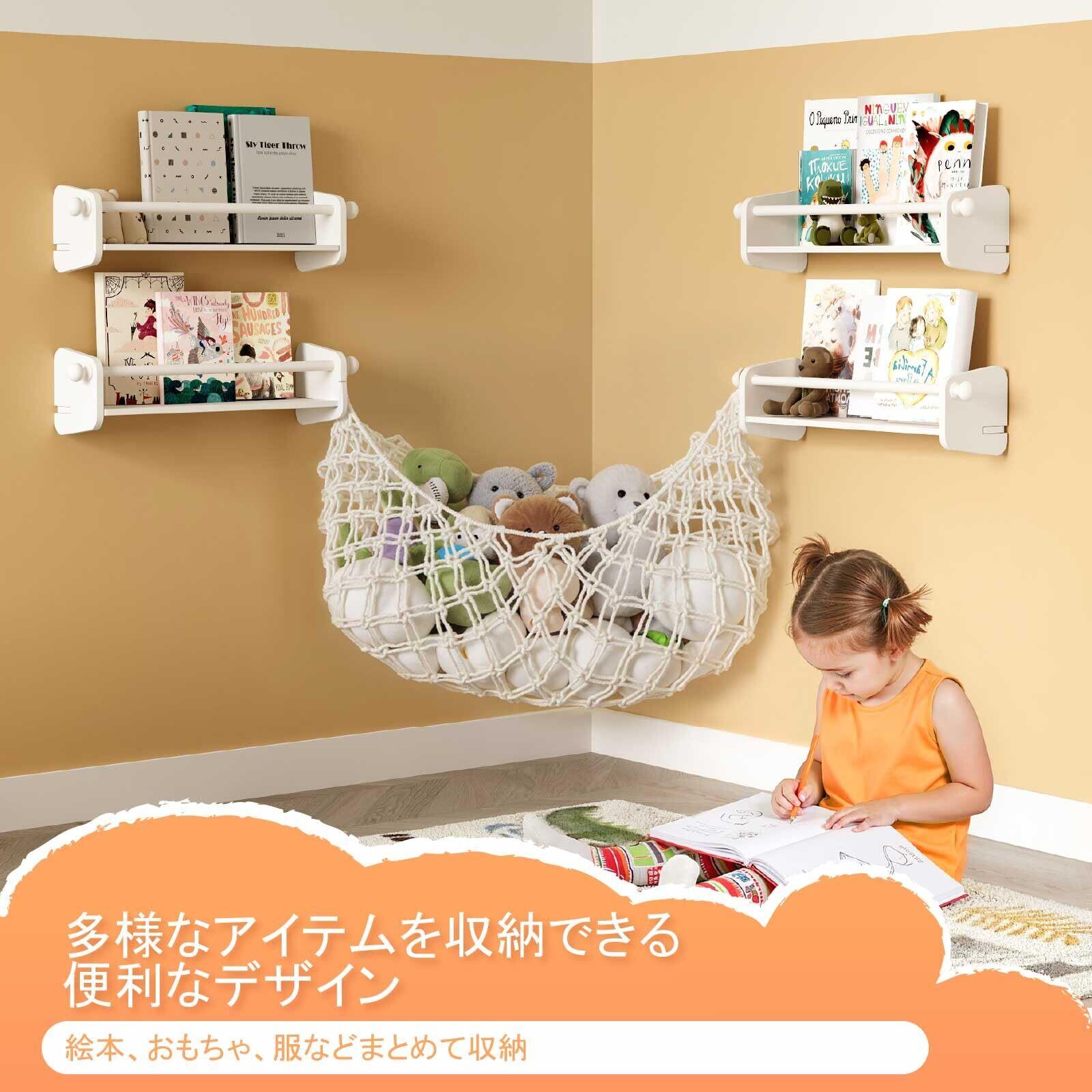 2.絵本・おもちゃ収納:大容量で絵本をたっぷり収納でき、ネット付きでおもちゃをスッキリまとめて収納できます。子供部屋や勉強部屋に取り付ければ、お片付けがもっと便利になります。