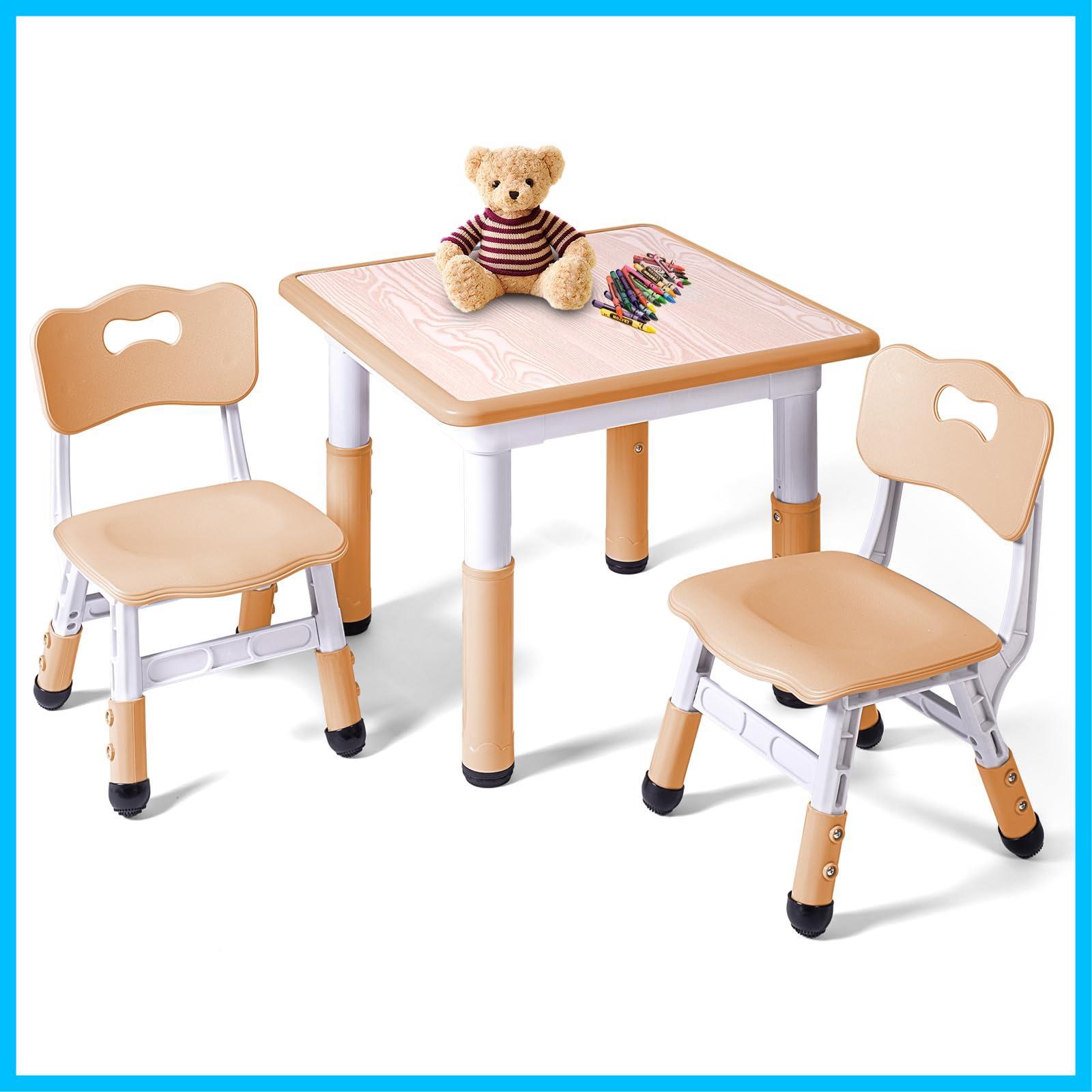 LAYAONE キッズテーブルと椅子2脚セット - 子供用テーブル高さ調整可能な幼児用学習テーブルと椅子セット、3~8歳の子供向け - 落書き用デスクトップ、簡単に拭ける/アート&クラフト用 - 家庭/教室/デイケア用