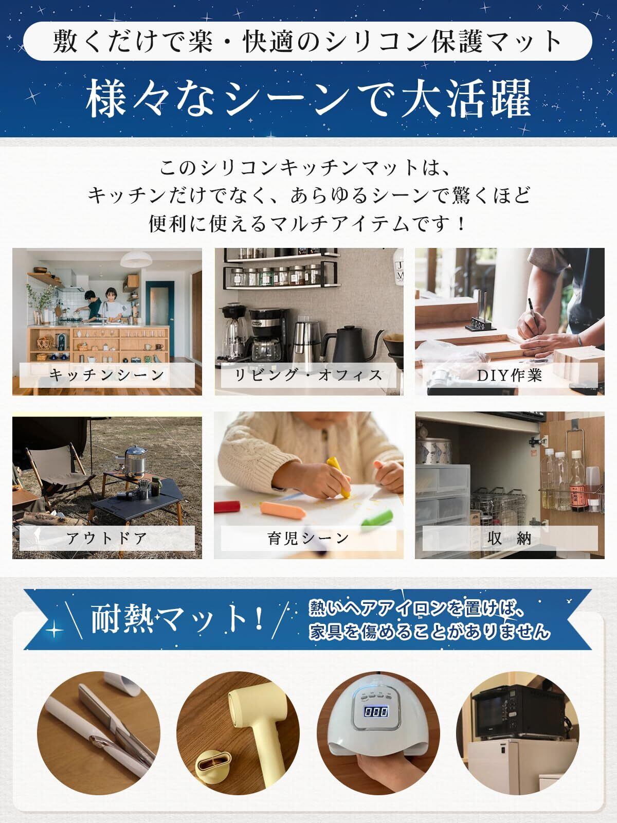 ✨【調理台を美しく保ちたい方へ】高品質なシリコンマットは、調理台やカウンターを傷や汚れから守ります。特に人工大理石やステンレスの調理台に最適で、油汚れや水滴もサッと拭くだけで簡単にキレイに。長期間使用しても美しさを保ち、買い替えの必要もなく、経済的です。
