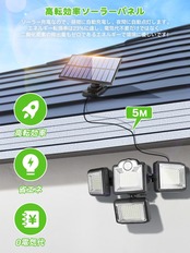 【環境に優しいソーラー発電!】太陽光で充電されるため、電気代が0円で、環境にも優しい商品です。また、大容量のバッテリーを搭載しているため、夜間も安定した照明を実現します。