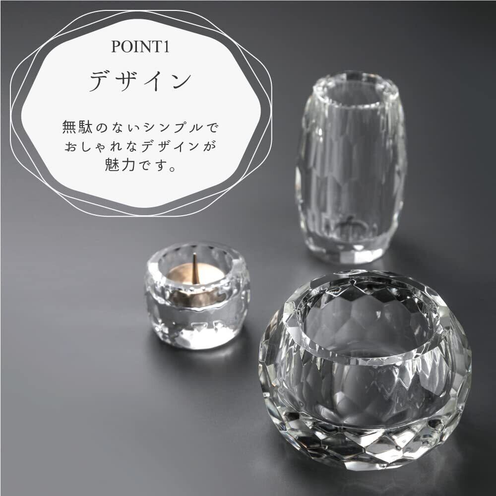 K7クリスタルガラスを使用したこの仏具は、優れた透明感と美しい輝きを持ち、どんなお部屋にも華やかさを加えます。また、光に当たることで発生する美しい反射が、さらに魅力を引き立ててくれます。モダンなデザインは、仏具が持つ伝統的なイメージを払拭し、スタイリッシュで心地よい空間を提供します。