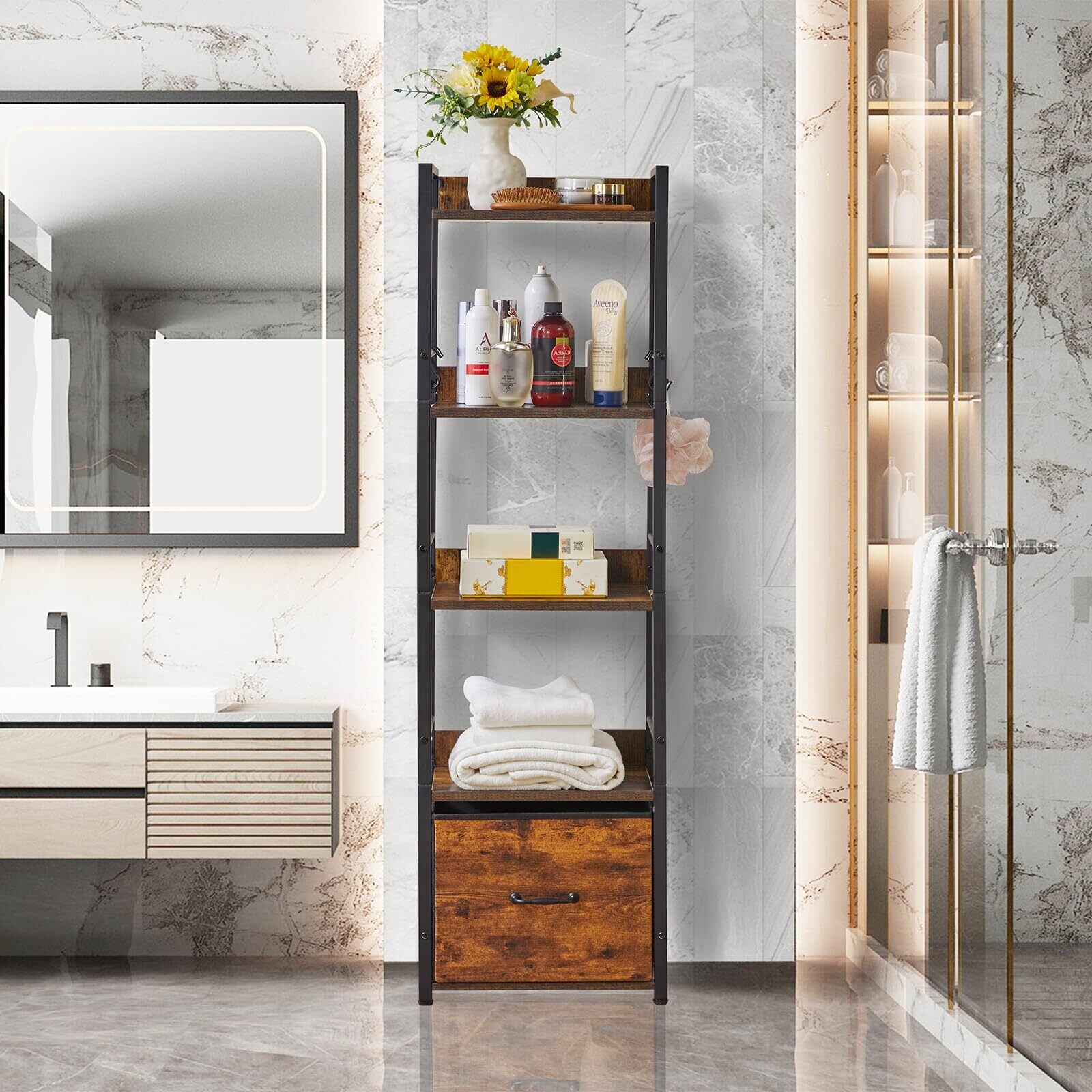 Aibiju 本棚 スリム リビング 棚 おしゃれ 幅39奥行26高さ136cm オープンシェルフ ラック 5段 収納ラック 収納棚 耐荷重75kg レトロ色の工業風 ヴィンテージ YD-BC001H | Lulu