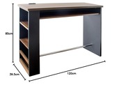 対面・壁面使える幅120㎝の木製天板。天板下には棚、側面にはラックがあり収納力もたっぷりです。