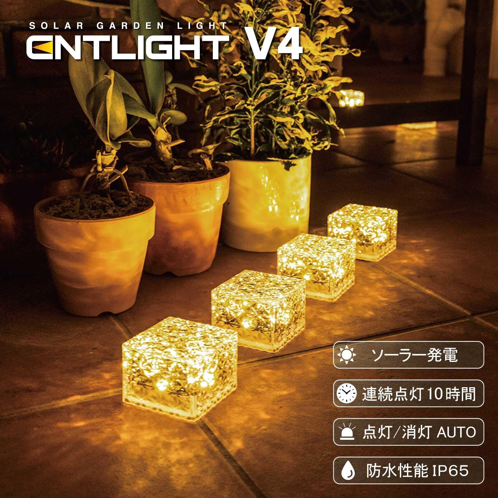 【特許デザイン】 ソーラーライト 屋外 ガーデンライト 防水 ソーラー ENTLIGHT (V4ダイヤカット:ウォーム/ホワイト切替_4個)