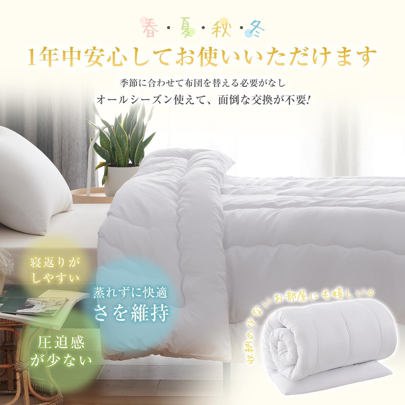 掛け布団 シングル オールシーズン 軽量 洗える【Ag+銀イオン抗菌素材 アレルギー対策】掛けふとん ほどよい保温力 かけ布団 柔らかな肌触り ほこりが出にくい 通気性 軽量 抗菌防臭 ふとん 掛布団 150x210cm ホワイト | Lulu