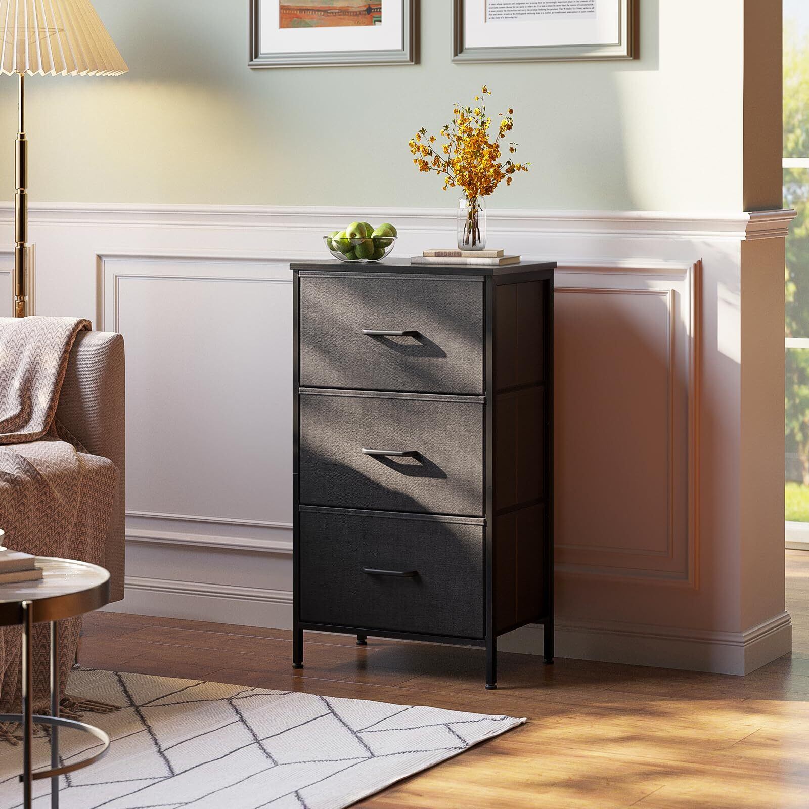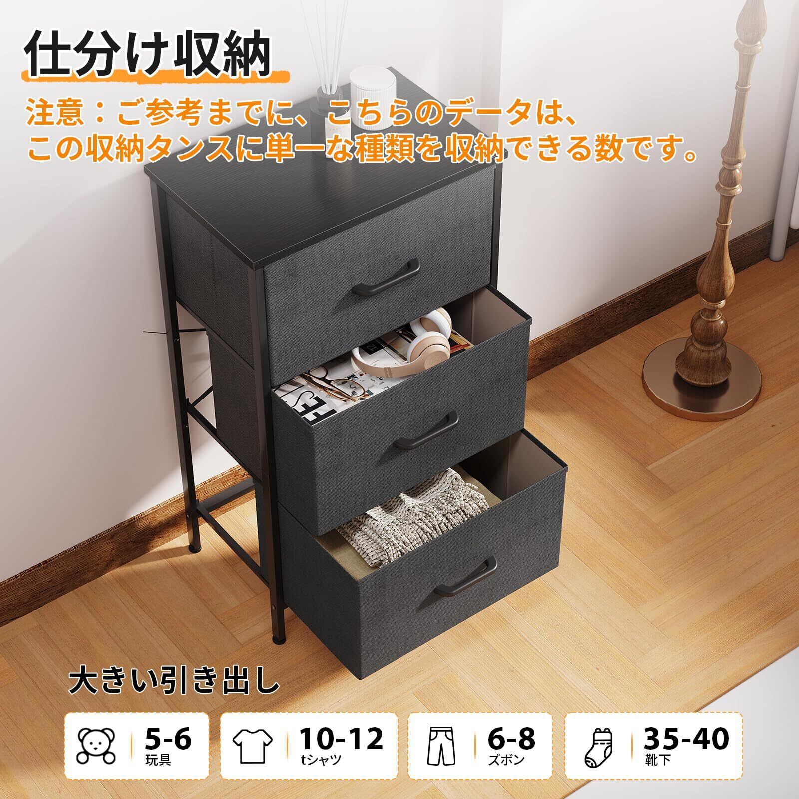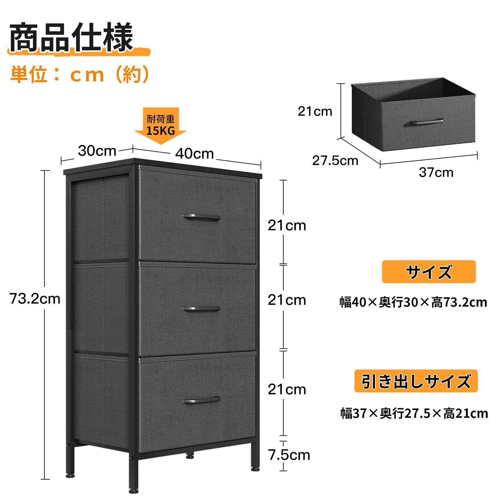 KKL チェスト タンス 収納ケース 衣類収納 引き出し リビング収納 布製 引き出し 衣装ケース 箪笥 転倒防止 低ホルム 安定感 3段 【幅40×奥行30×高さ73cm】グレー