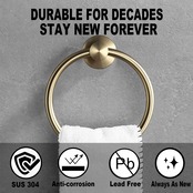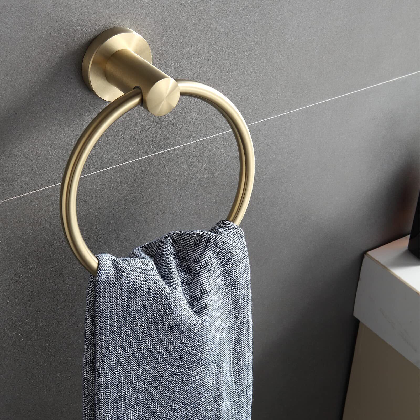 Orlif タオルリング つや消しゴールド 浴室用 SUS 304 高耐久 ステンレススチール ハンドタオルホルダー 円形 バスタオルホルダー ハンガー 壁掛け金具付き (ドリルが必要) (ゴールド) | Lulu