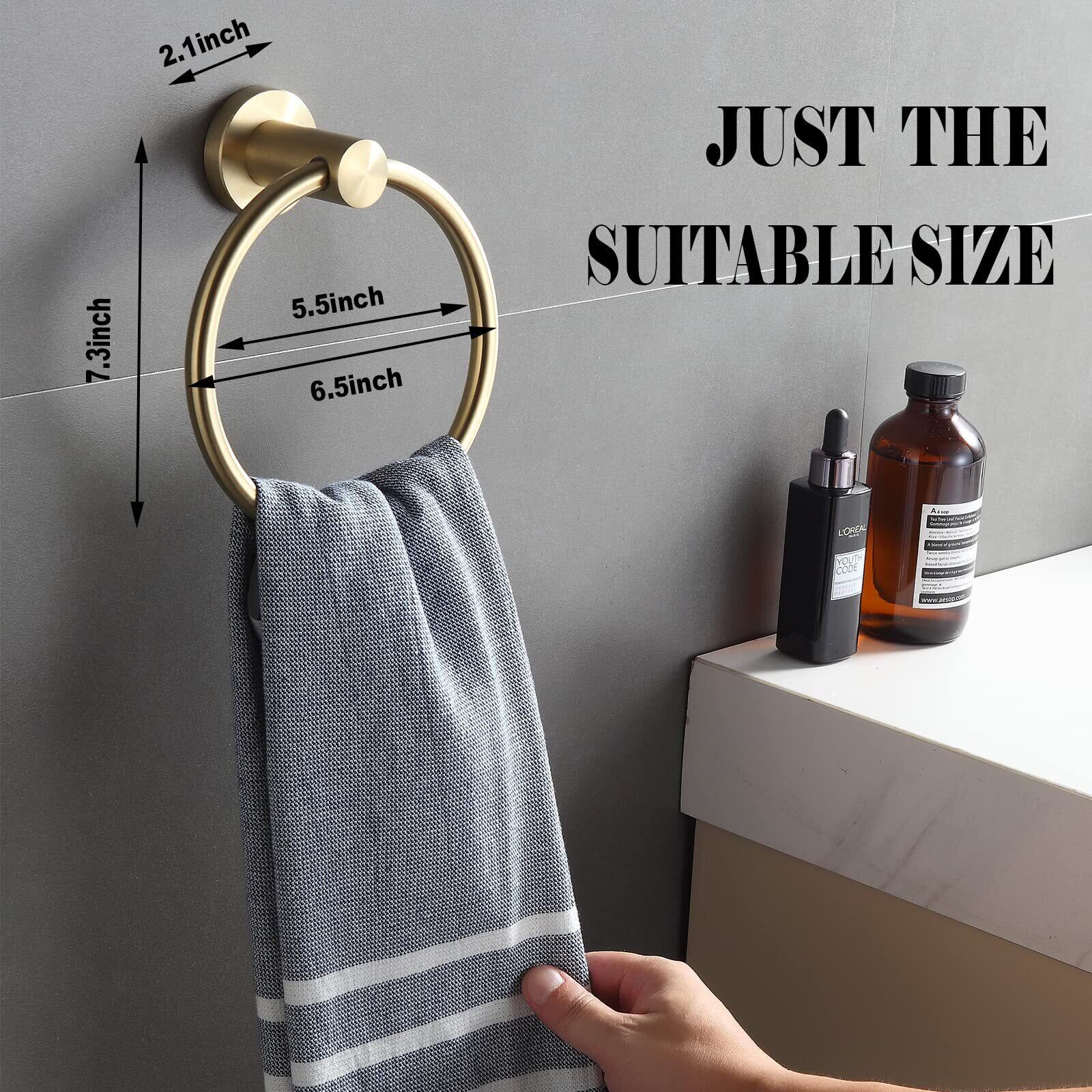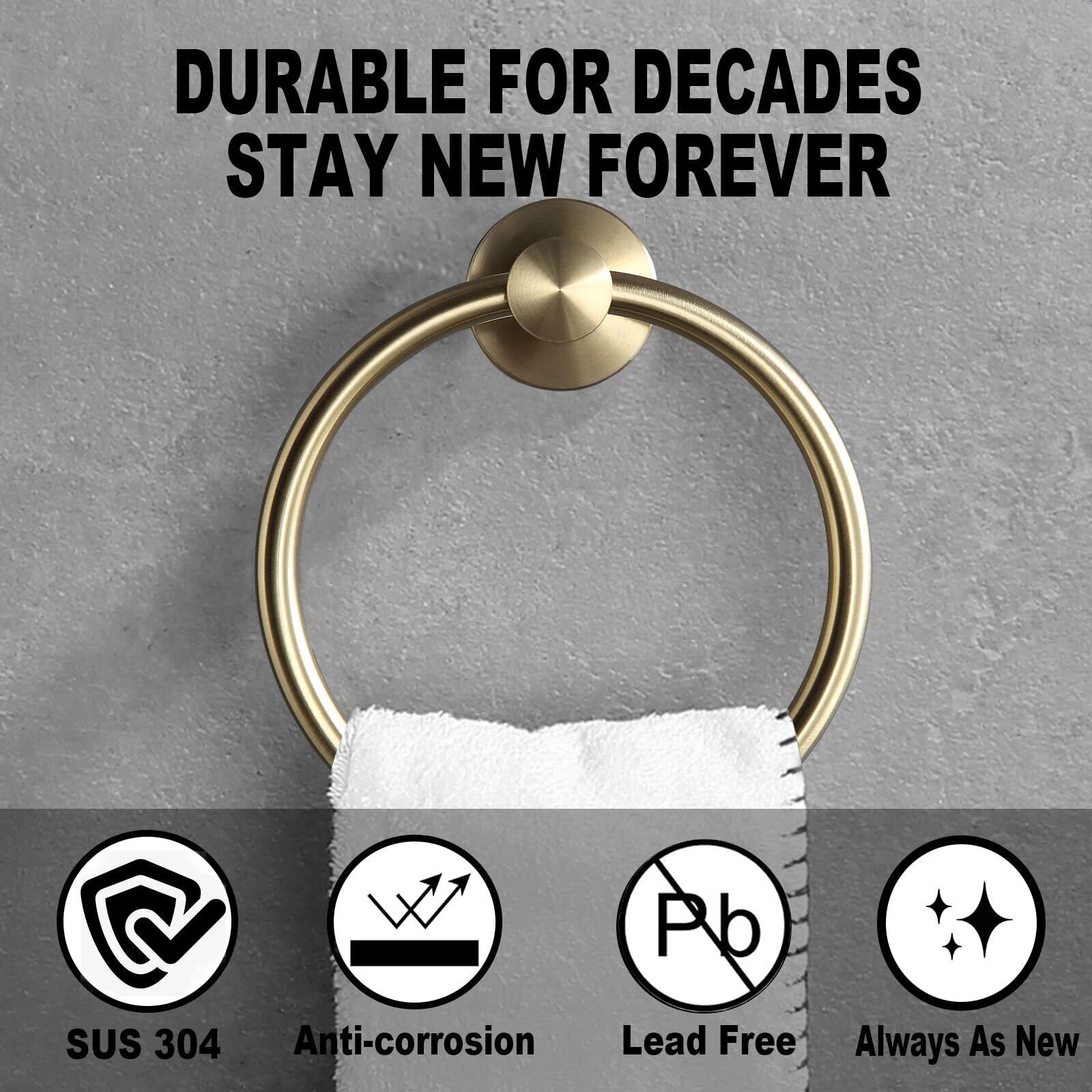 Orlif タオルリング つや消しゴールド 浴室用 SUS 304 高耐久 ステンレススチール ハンドタオルホルダー 円形 バスタオルホルダー ハンガー 壁掛け金具付き (ドリルが必要) (ゴールド)