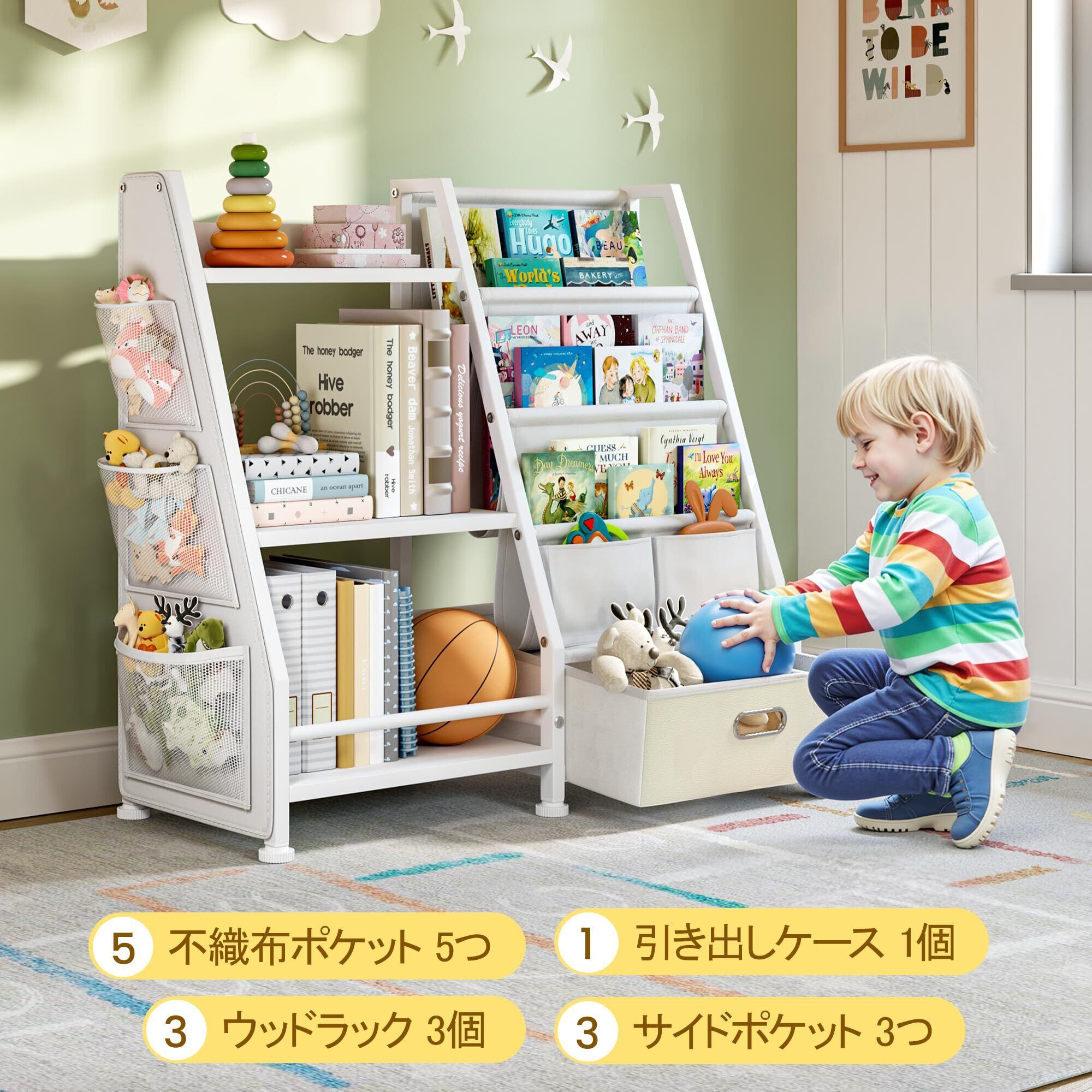 頑丈な構造で、長期間の使用にも耐えられる高品質な素材を使用しています。子供が使うものだからこそ、安全性を重視した設計です。しっかりとした作りで、大切な絵本やおもちゃも安心して収納できます。