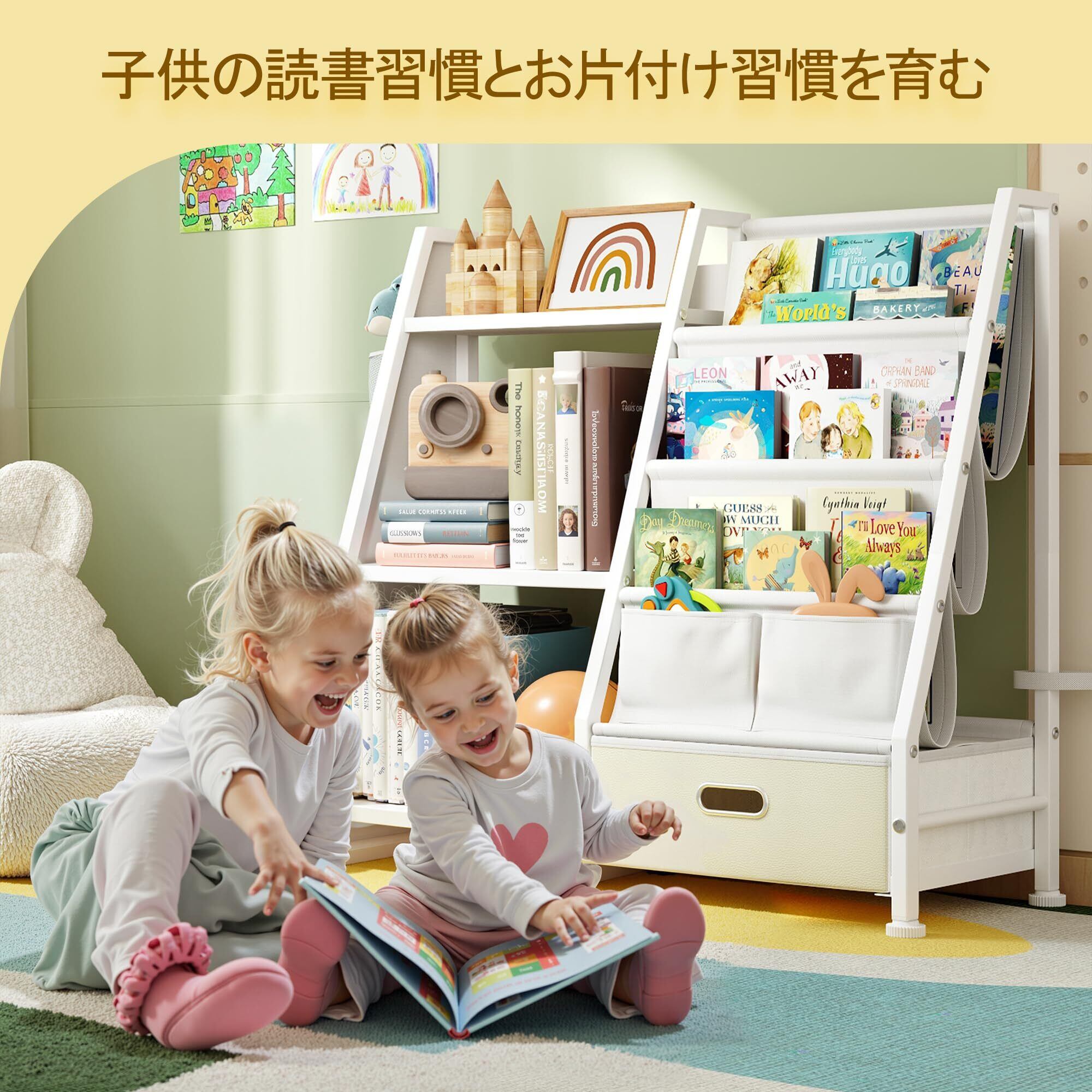 GoTiling 大容量 子供 収納 本棚: 勉強部屋 しっかり 絵本ラック - 子供部屋 スッキリ 収納棚 - 可愛い おもちゃ収納ボックス 保育園