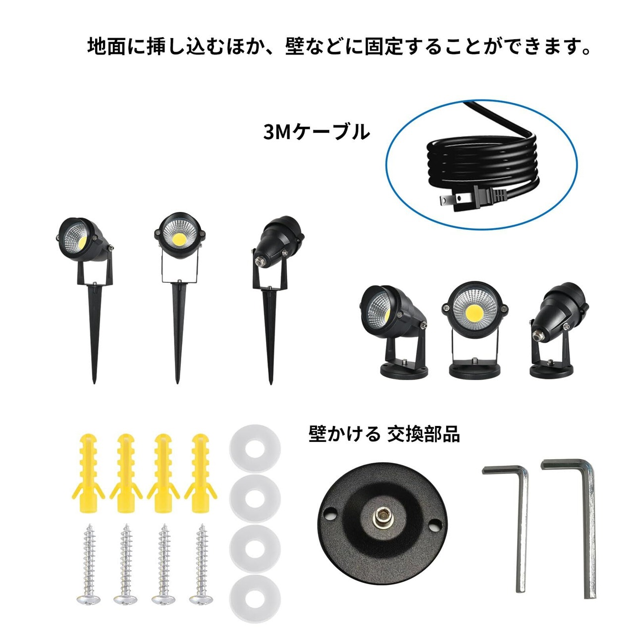 LED ガーデンライト: 高品質なCOBチップ採用して、寿命50000時間以上、LEDチップ り明るく、安定、消費電力:10W、入力電圧: AC100V [ AC85-265V 共用 ]常時点灯ライトとして使用できます。1280ルーメンで超明るく、色温度:昼光色 6000K、コード長3m プラグ付き。 ガーデンパスライト