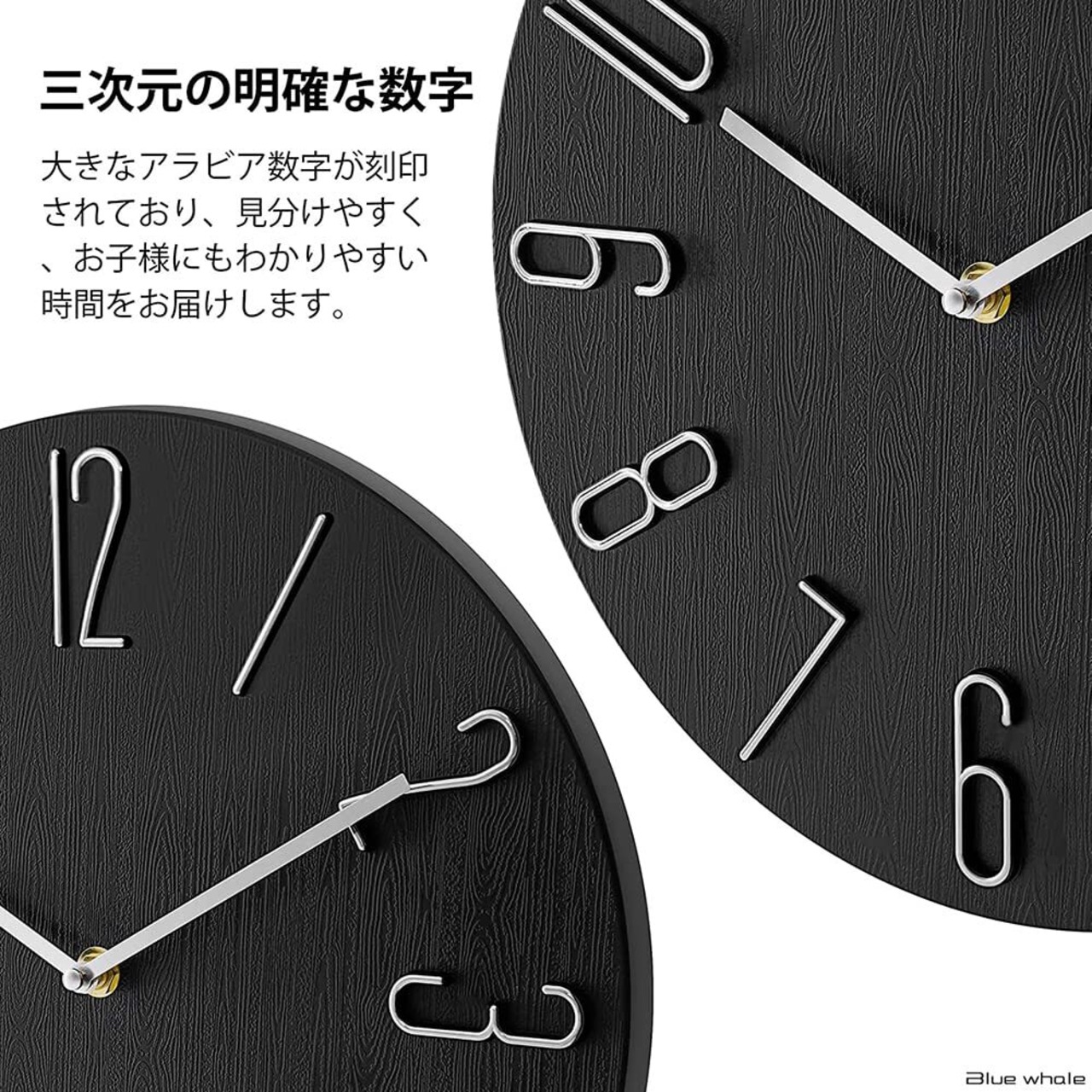 Nbdeal 掛け時計 静音 連続秒針 直径30cm おしゃれ 軽い 壁掛け時計 北欧 音がしない 非電波 ブラック