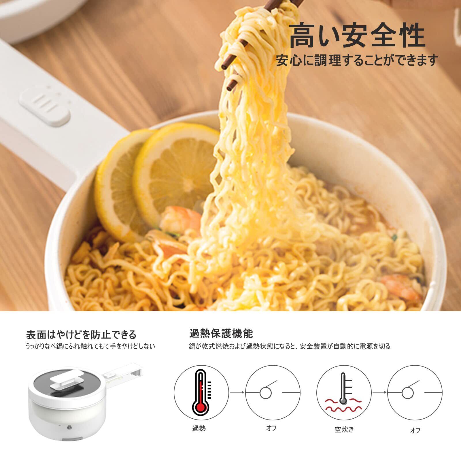 【急速加熱と高い安全性】電気鍋には研究した熱伝導板を採用し、食品を均等に加熱し、加熱も長時間に持続できます。従来のストーブより短い時間で調理し、さまざまなおいしい料理を簡単に調理できます。また、過熱保護機能を備え、鍋が乾式燃焼および過熱状態になると、自動的に電源が切れるようになっています。皆さんの安全を確保し、ご安心に使用してください。