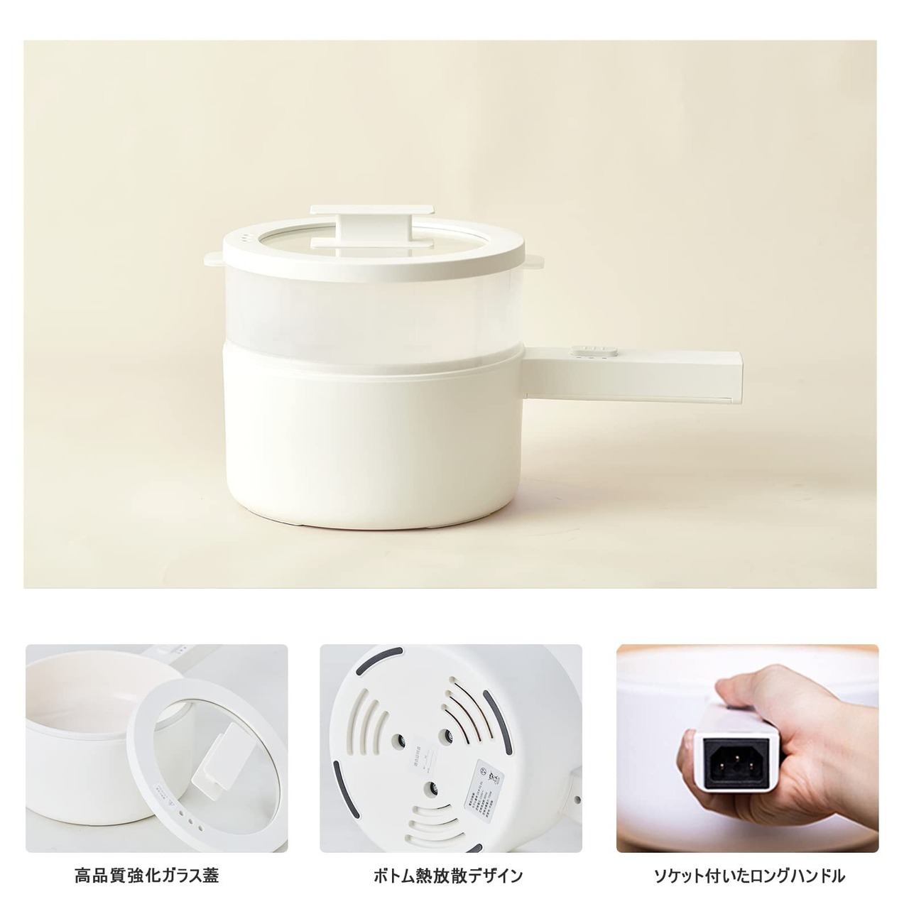 この電気鍋は、スチーマー付きかつ上下段式の設計が特徴です。簡単に蒸し料理が楽しめる他、焦げ付き防止機能も完備。温度調整機能により、様々な調理に対応できるのも魅力です!手軽に美味しい料理が楽しめる一品です。
