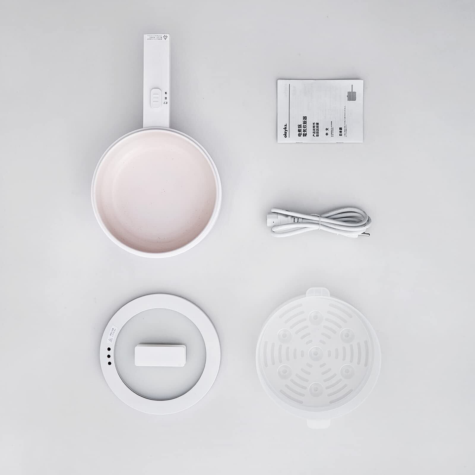 olayks.1.5L電気鍋 一人用 一人鍋 電気 グリル鍋 多機能フライパン スチーマー付き 上下段式 蒸鍋 片手鍋 ステーキ、すき焼き、炒め物用焦げ付き防止 温度調整機能 丸洗い可 ロングハンドル 寮 オフィス 旅行(1.5L(スチーマー付き)) | Lulu