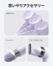 過熱防止機能を搭載しており、安心してお使いいただけます。乾燥中は温度が適切に制御されるため、髪へのダメージを最小限に抑えます。さらには、10万RPMの超高速回転により、低騒音で快適にお使いいただけます!