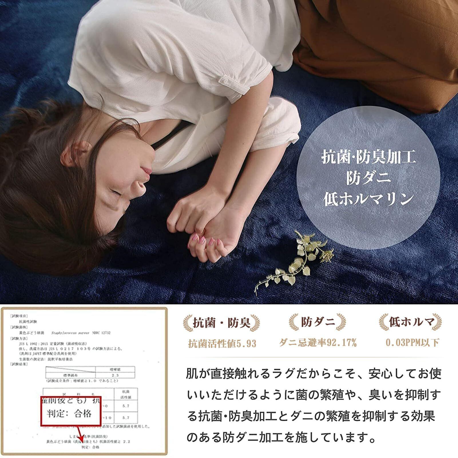 【抗菌・防臭・防ダニ】ラグの生地は、菌の繁殖を抑える「抗菌防臭」と「防ダニ」加工済で、小さなお子様やお年寄りのいるご家庭でも安心してお使いいただけます。10回選択検査を実施して、丸洗いしても防ダニ効果は持続することを確認しています。