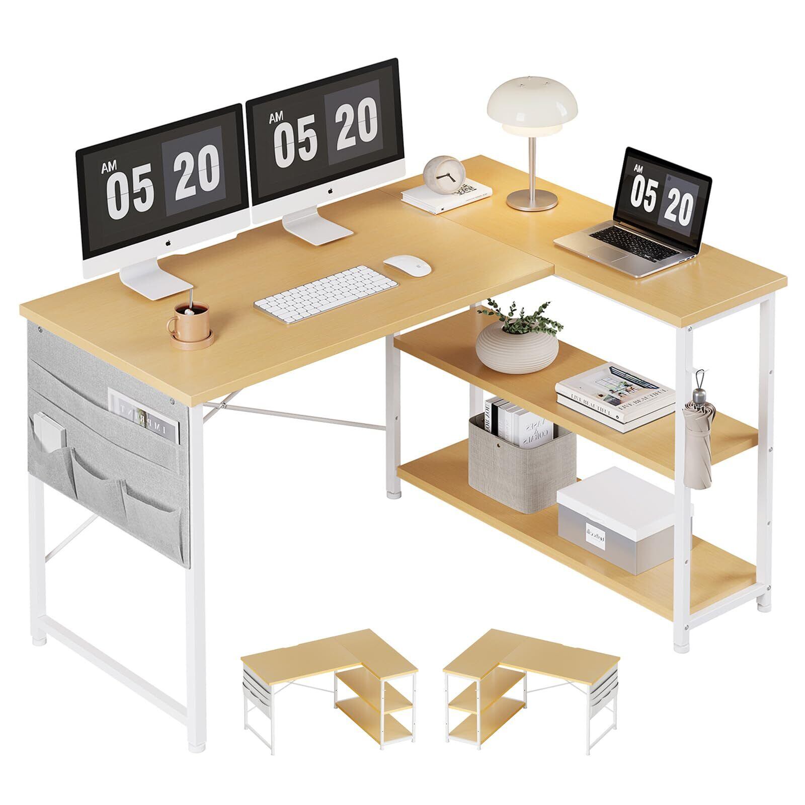 YeTom l字デスク ゲーミングデスク 机 デスク 右棚左棚 幅107cm つくえ 棚板高さ調節可能 収納袋付き L字型 PC 勉強机 作業 在宅ワーク ライトオーク