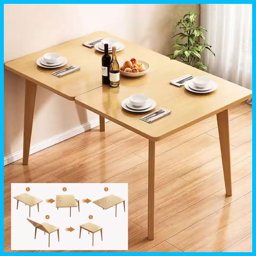 テーブル ダイニングテーブル 折りたたみテーブル 2in1 4人用 2人用 幅120×奥行80×高さ75㎝ ナチュラル 天然木 簡単組立 頑丈 木製 おしゃれ 北欧 和風