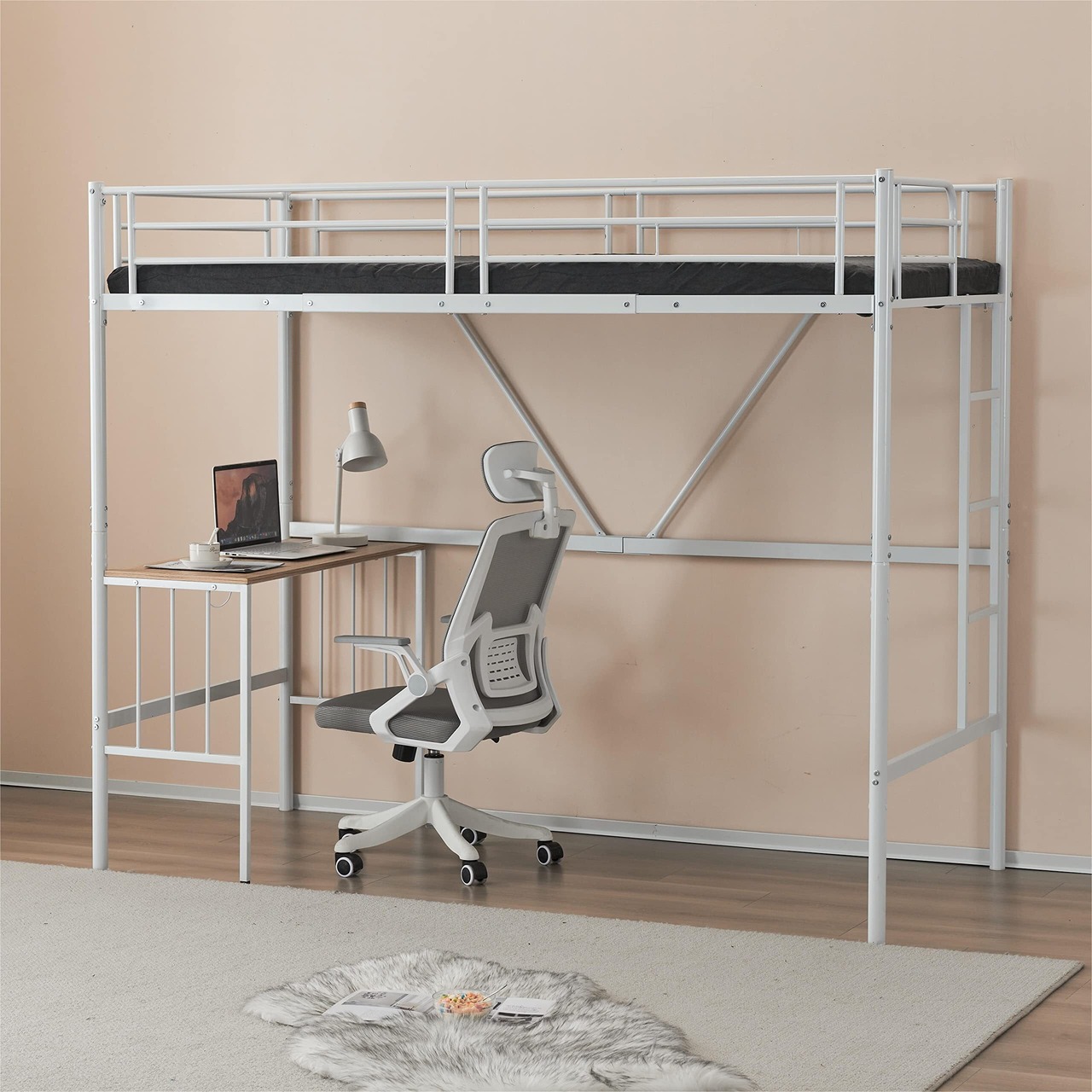 OSJ ロフトベッド パイプベッド デスク付き シングル ベッドフレーム 収納 北欧風 子供部屋 スチール 耐震 ベッド 組立簡単 寮 (One bed, ホワイト)