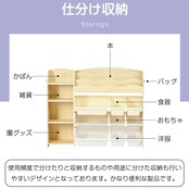 この収納ラックは、絵本を立てて収納できるため、子供たちが自分で取り出しやすくなっています。また、収納ボックスとしての機能も兼ね備えており、雑貨やおもちゃをまとめて収納できる便利さが魅力です。収納力抜群で、お子様が自らの持ち物を管理する習慣を育てる手助けをします。