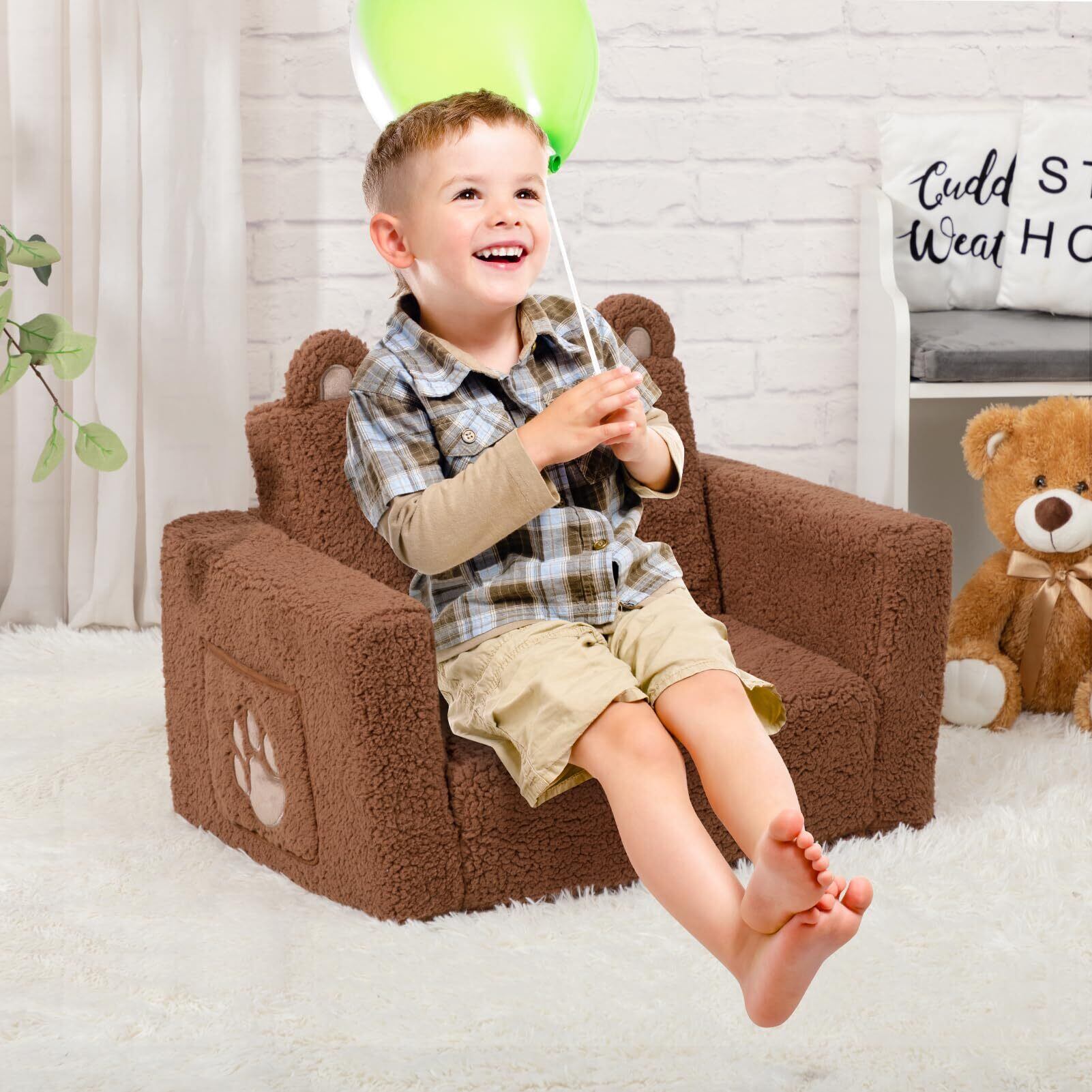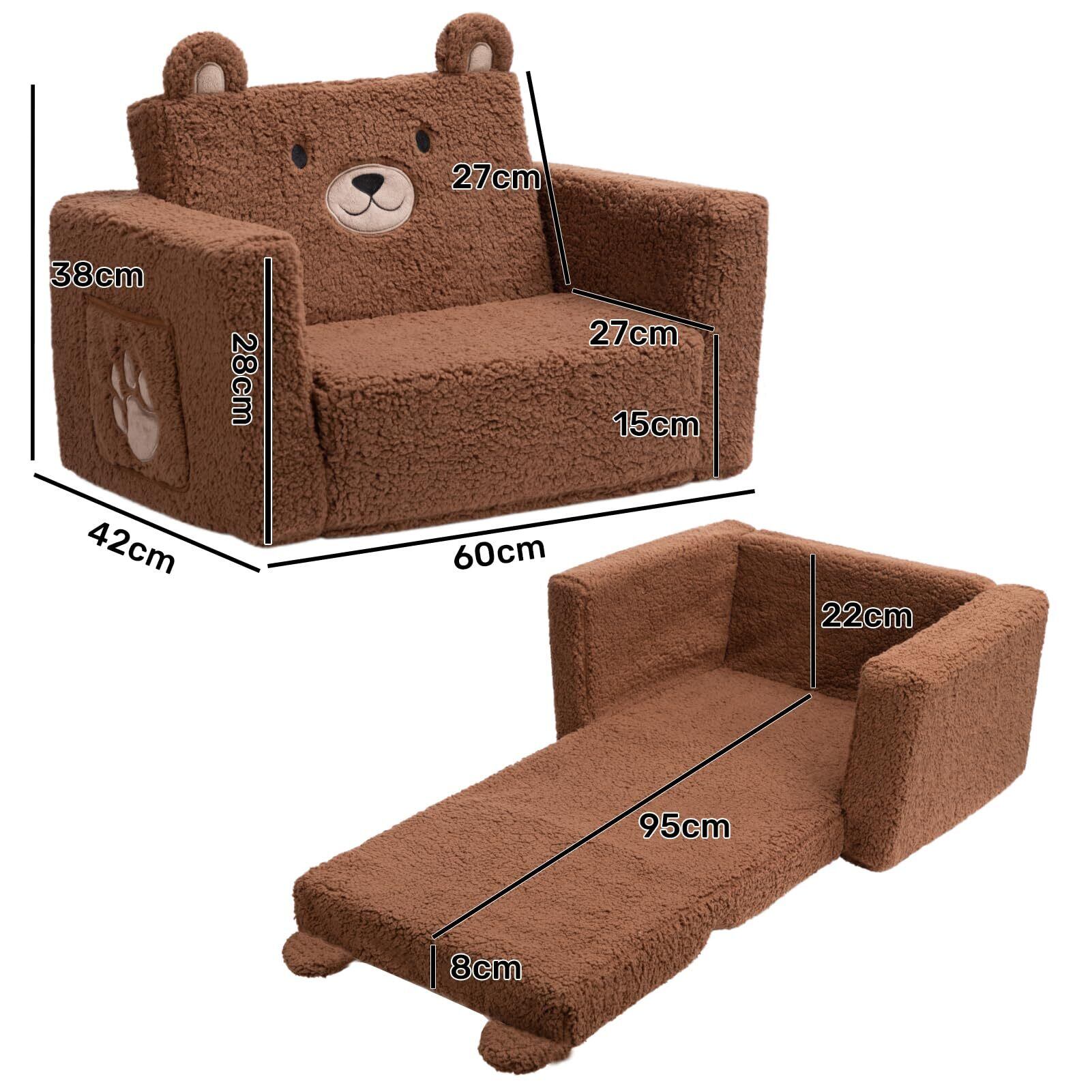 ALIMORDEN 子供用ソファー キッズソファーベッド ベビーチェア 赤ちゃん座椅子 お座り練習 可愛い ふわふわ 背もたれ 折りたたみ 一人掛け プレゼント 熊