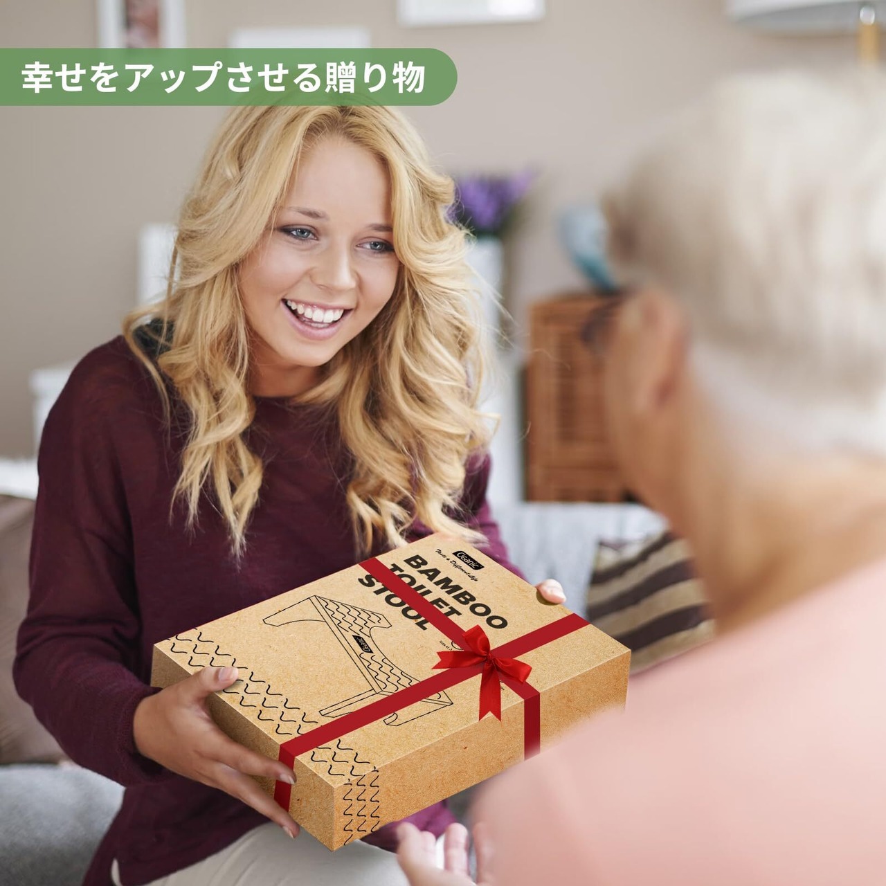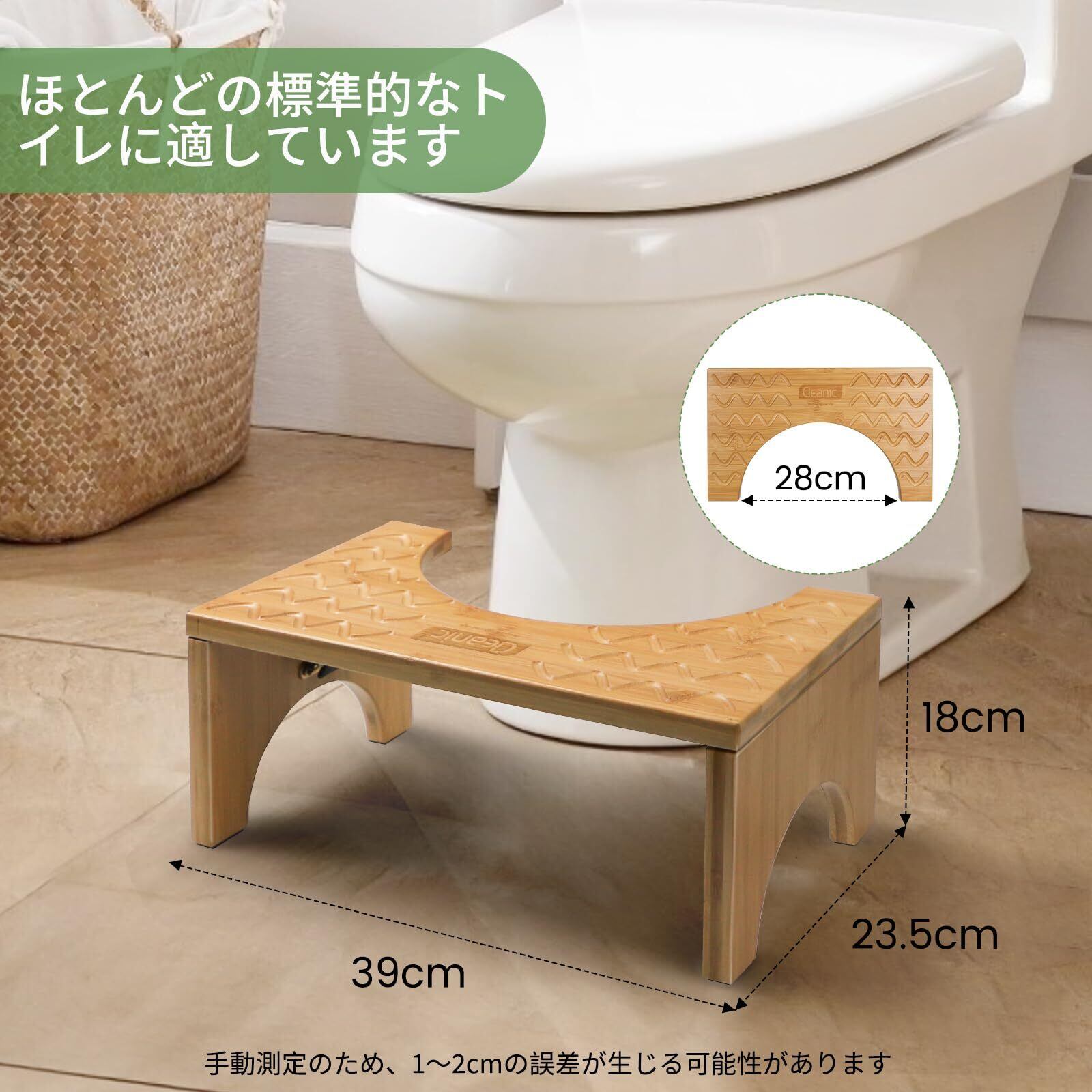 [楽な姿勢] 高さ18cmの竹製トイレスツールを使用することで、より健康的なトイレ姿勢を実現し、スムーズな排便をします。お年寄りや妊婦さんなど、多くの人のニーズに応えられます