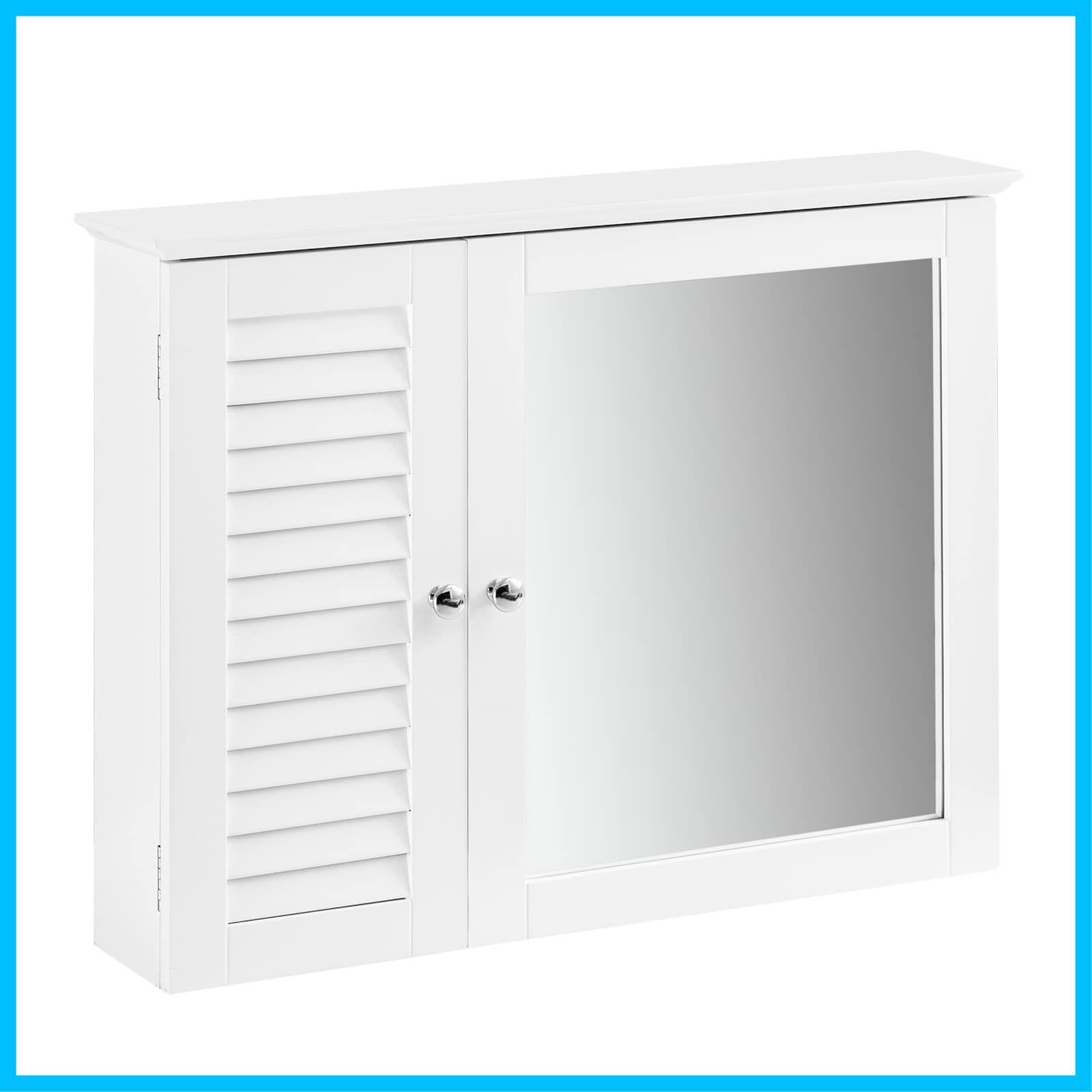 SoBuy ミラーキャビネット 鏡 壁掛け 洗面台 鏡 ウォールミラー 風呂 鏡 幅65×奥行15×高さ49cm 壁掛け鏡 ミラー 洗面所収納 浴室用化粧鏡 おしゃれ 玄関鏡 mirror 収納棚付き/飛散防止 (BZR55-W/ホワイト) | Lulu