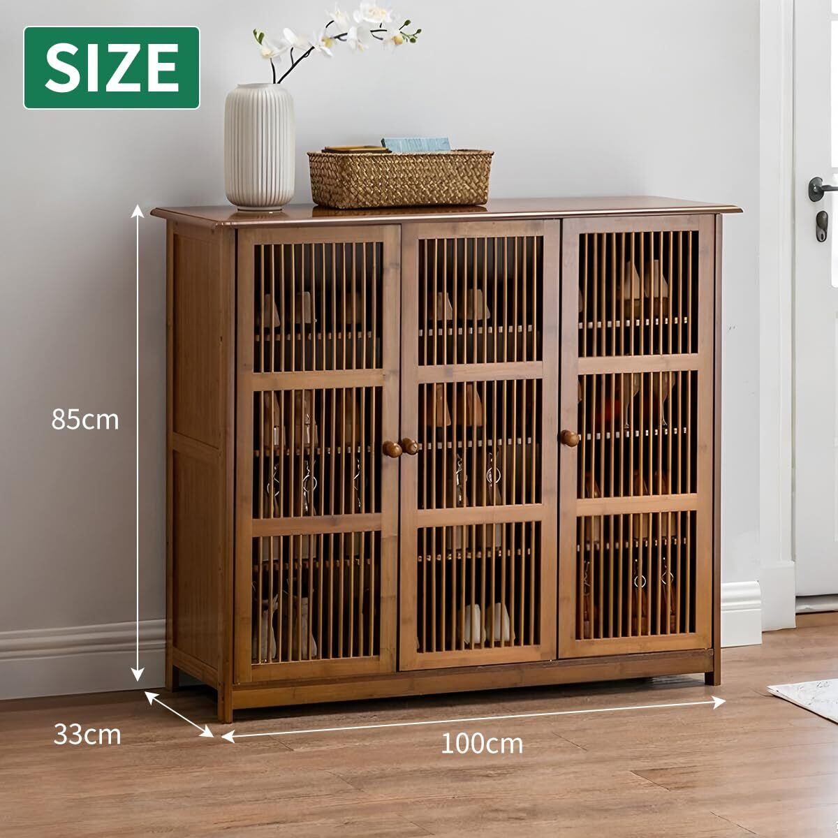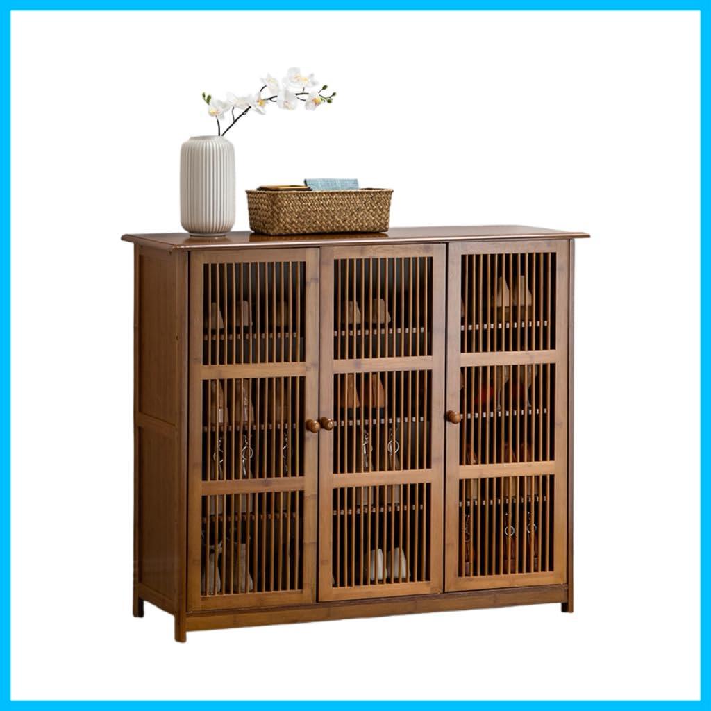 Yumcute シューズボックス 下駄箱 幅100cm ルーバーシューズボックス 靴箱 大容量 天然竹製 木製家具 扉付き 玄関収納 スリム 薄型 省スペース 4段 靴 収納 消臭 シューズラック 靴棚 靴置き 靴収納ラック 通気性 ルーバー式 3扉タイプ | Lulu